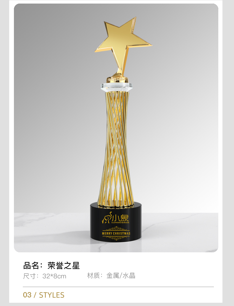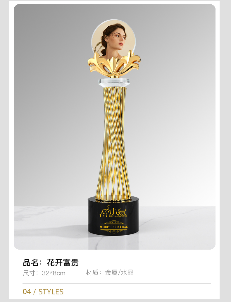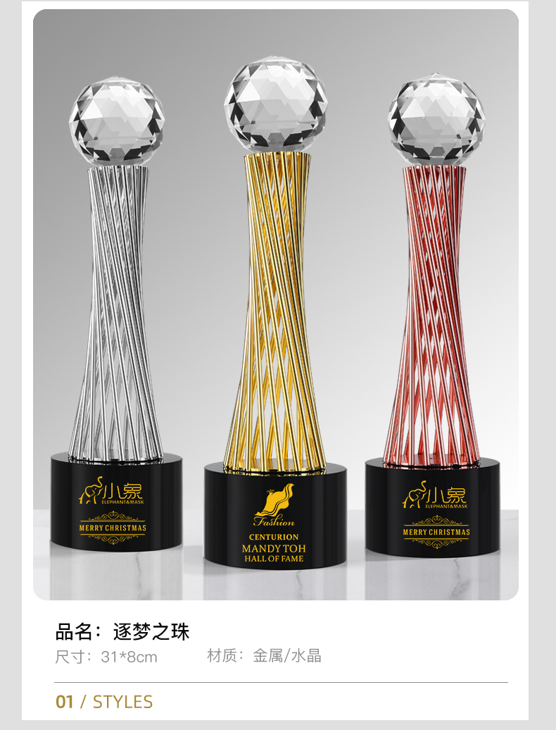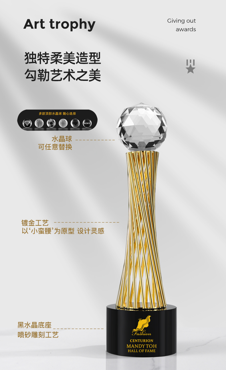 1036 / 金属奖杯定制创意高档大气水晶奖牌定做设计刻字优秀员工奖杯订制