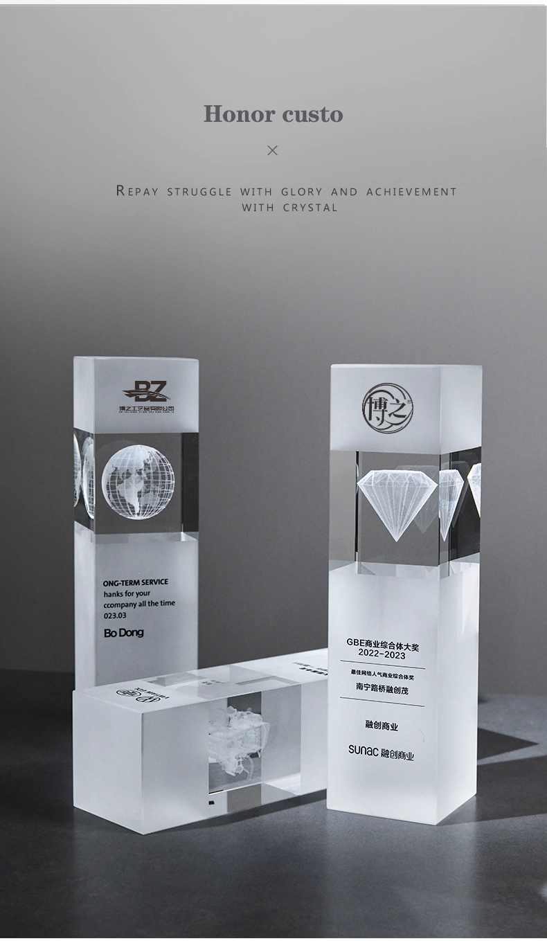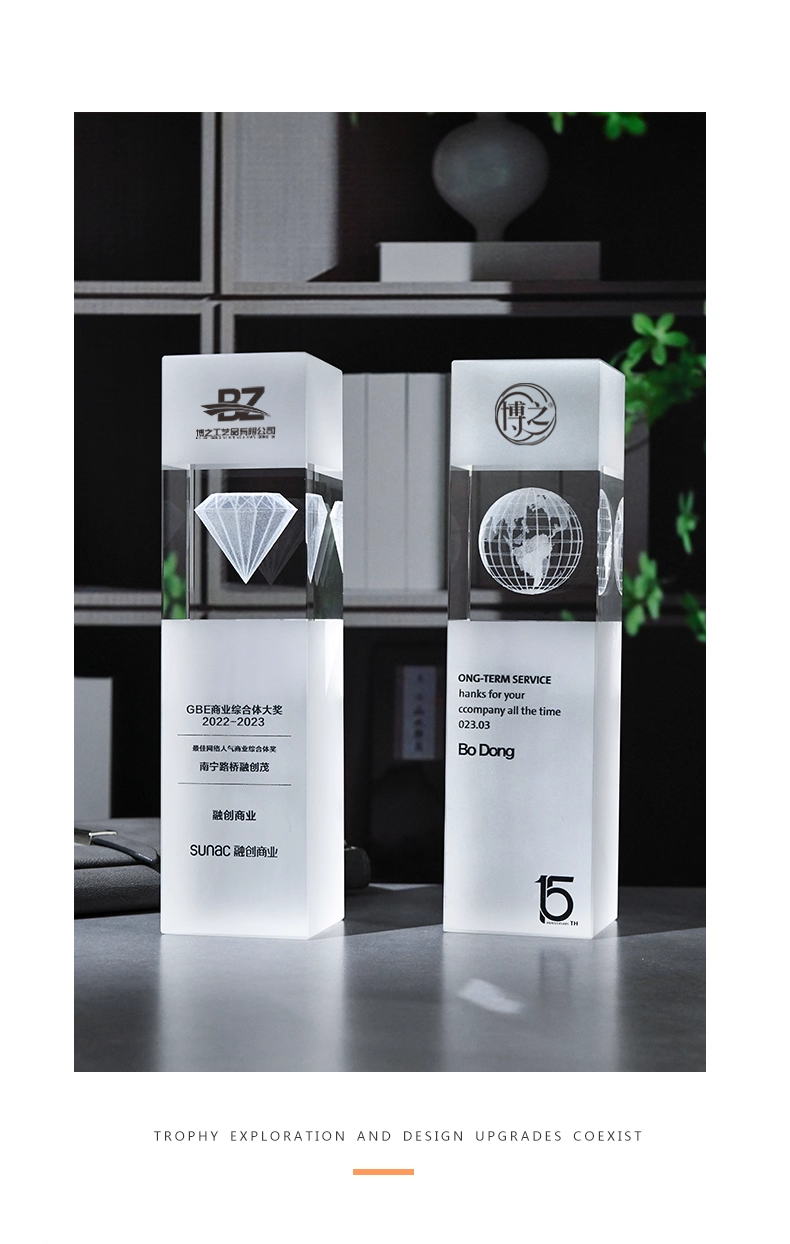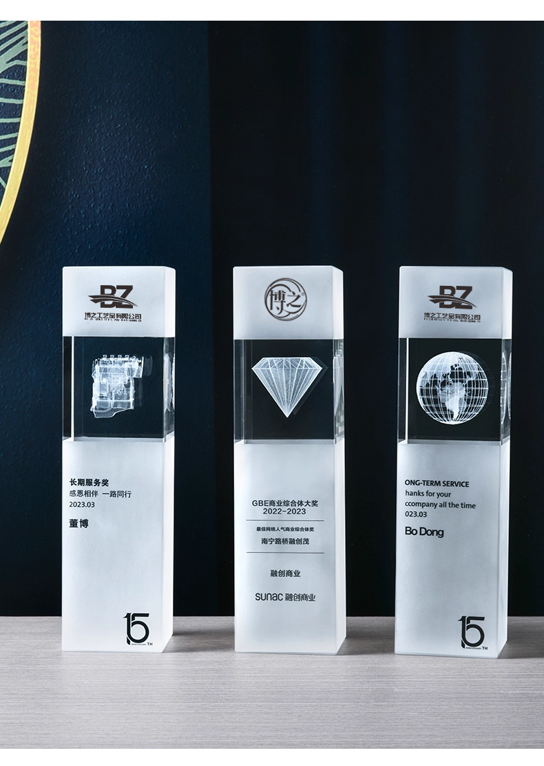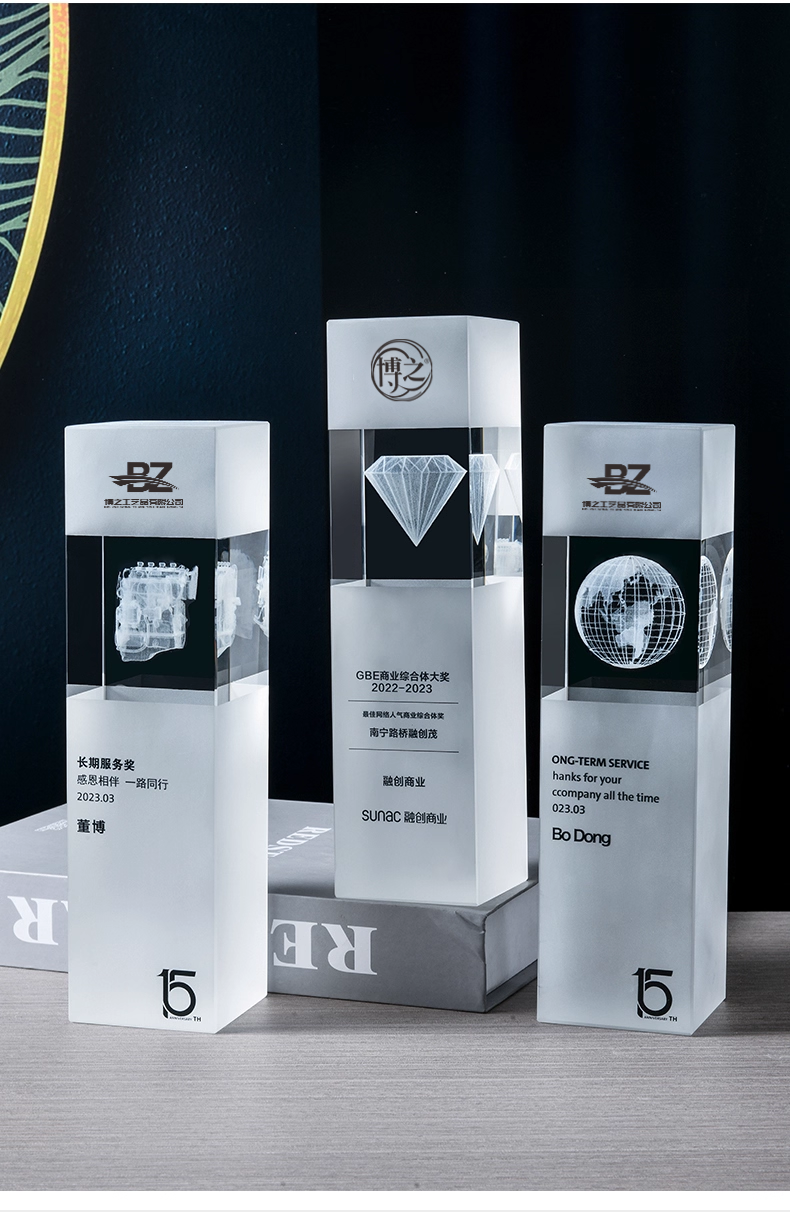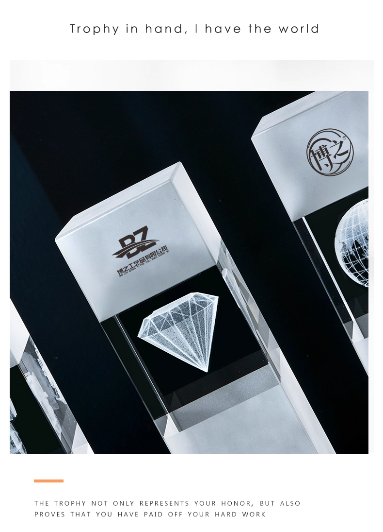 152 / 水晶内雕奖杯定制高档创意logo3d商务庆典纪念品优秀员工奖座订制