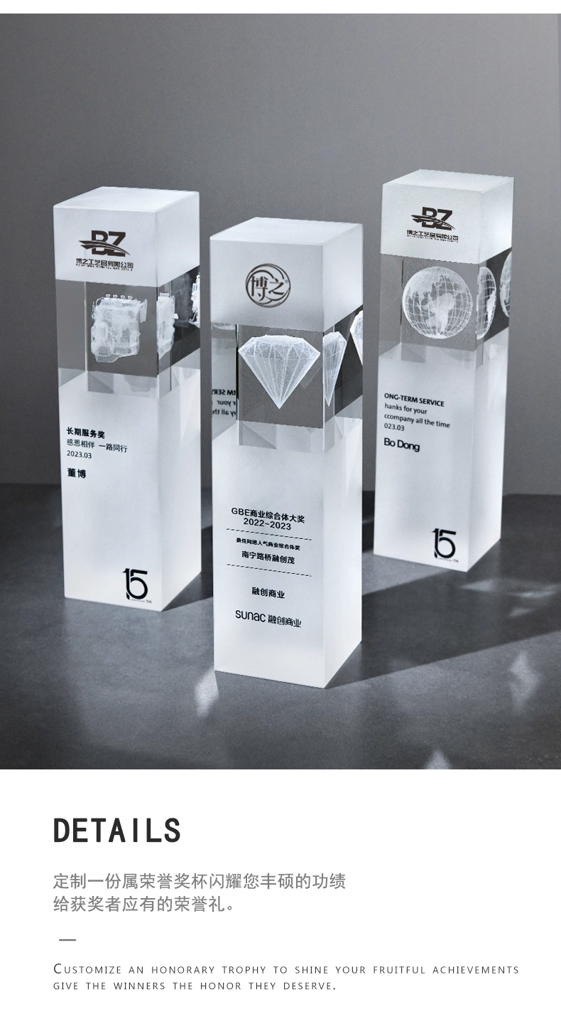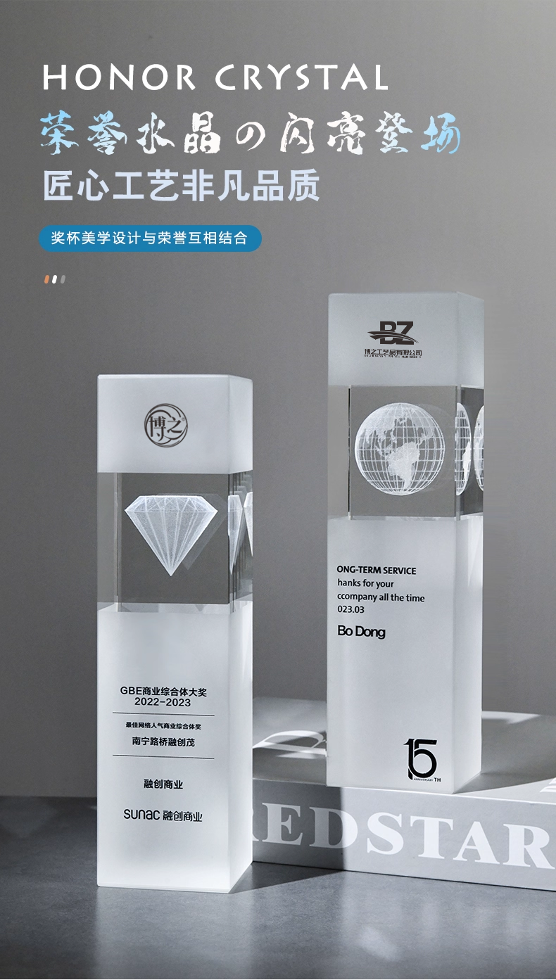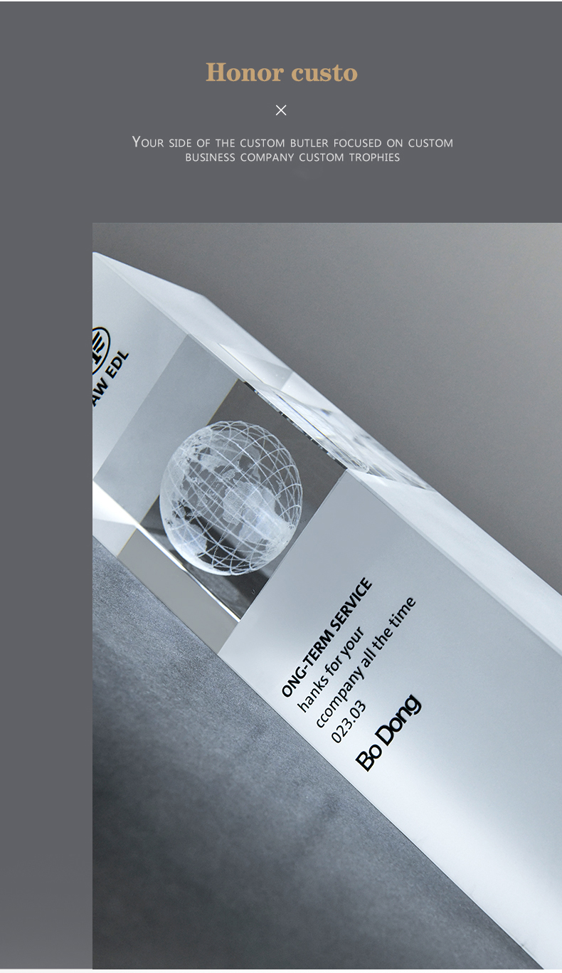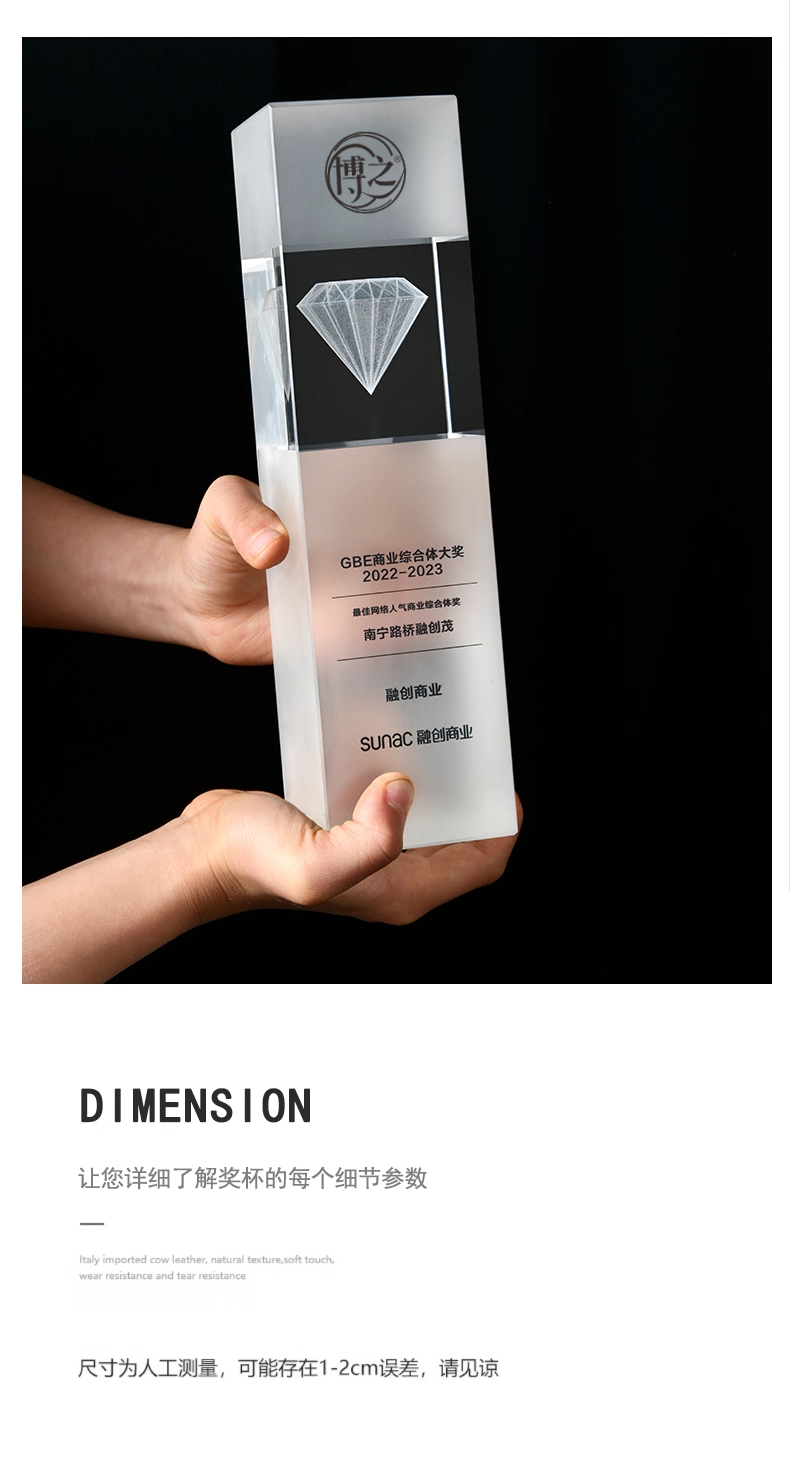 152 / 水晶内雕奖杯定制高档创意logo3d商务庆典纪念品优秀员工奖座订制