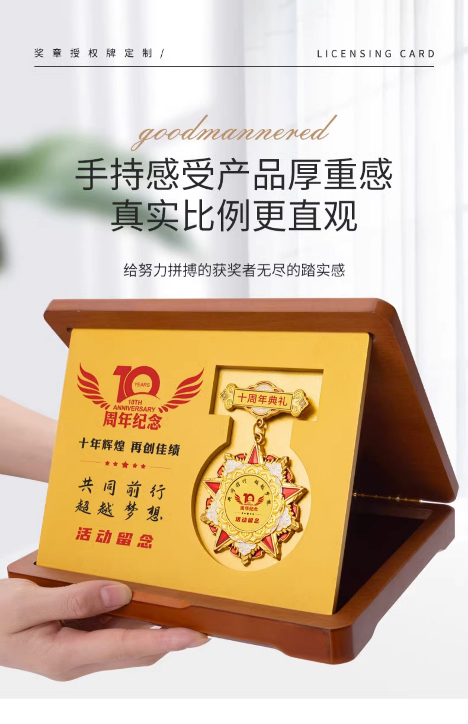 616 / 勋章定做折叠木板奖章退休十周年胸徽章年会优秀员工表彰颁奖奖牌