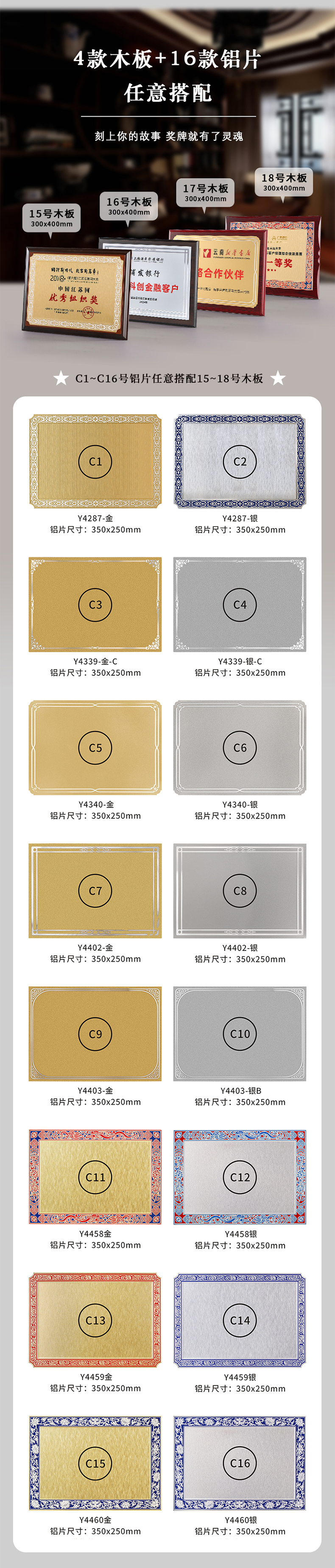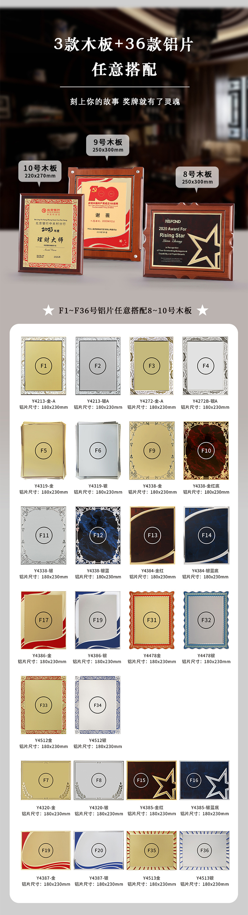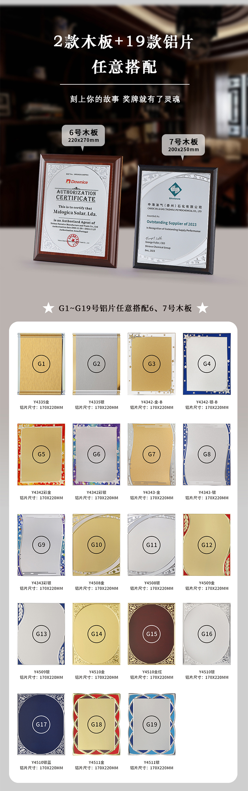 601 / 奖牌定制定做颁奖证书荣誉牌刻字牌匾铜牌木托木质奖杯挂牌授权牌