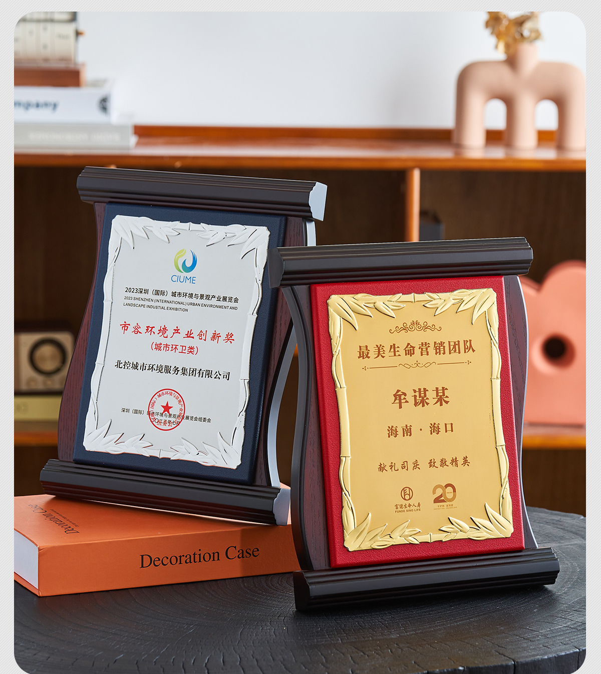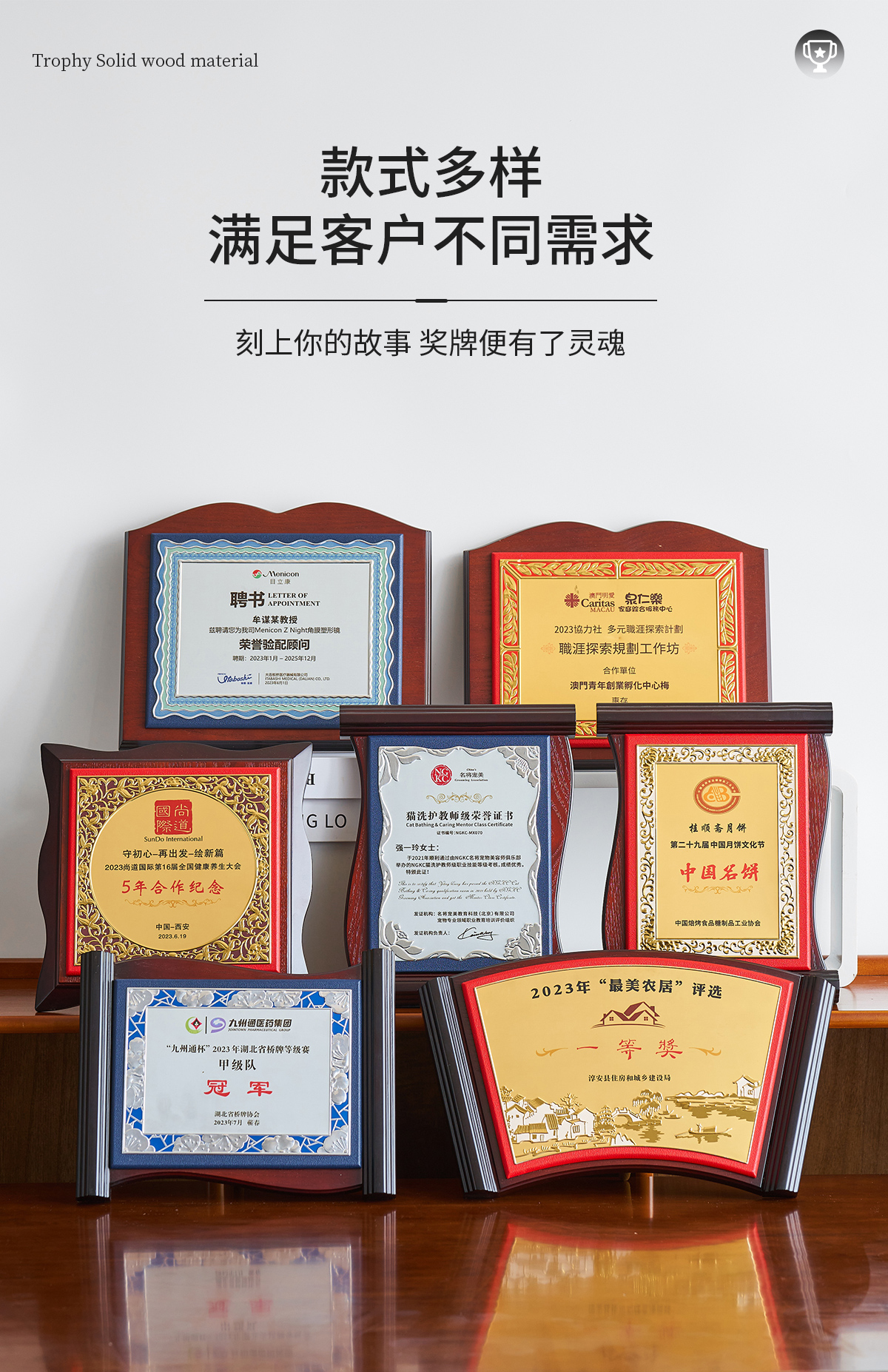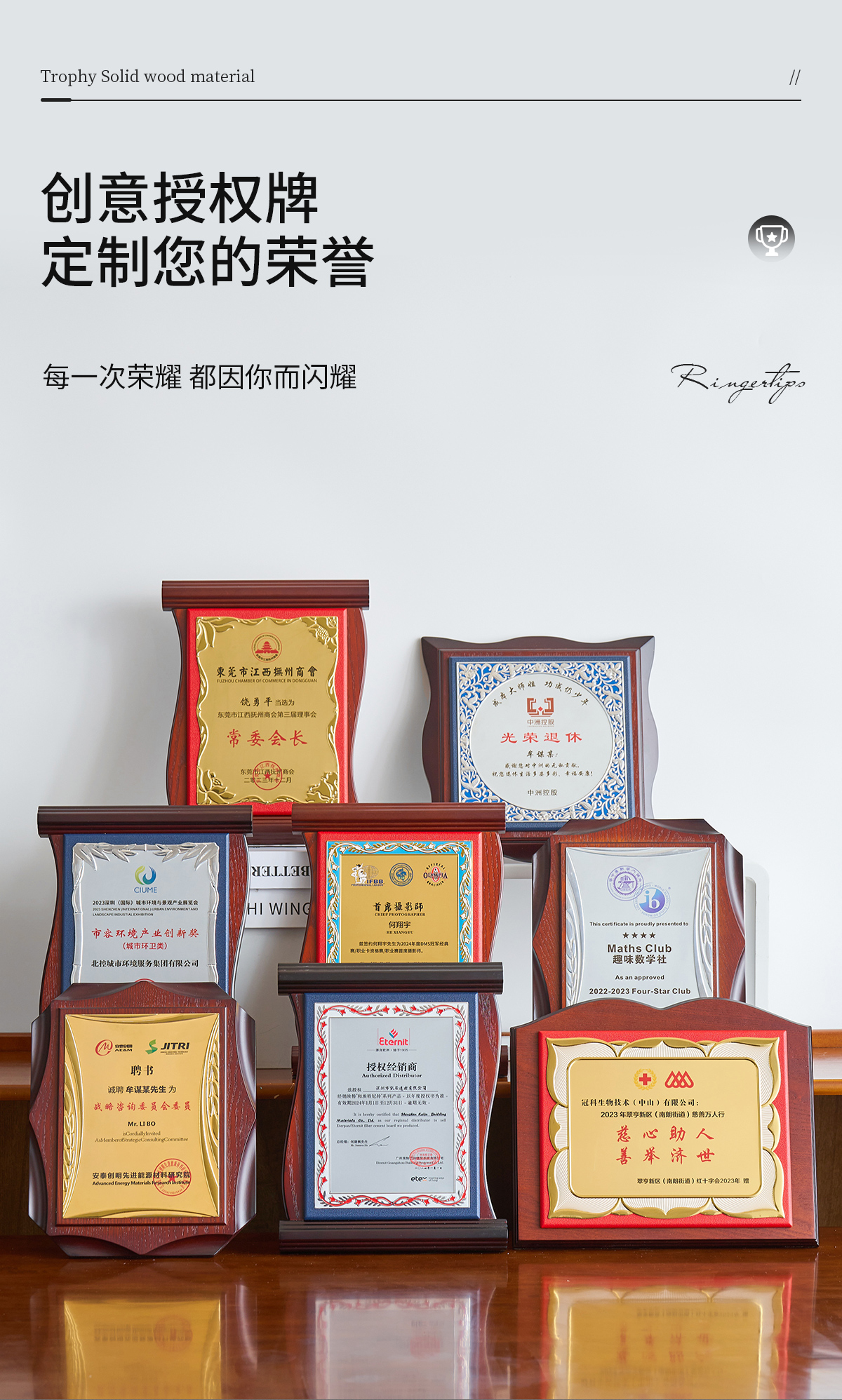 604 / 皮面高档奖牌定制定做授权牌荣誉牌匾定做铜牌实木质代理商金箔授权牌定制