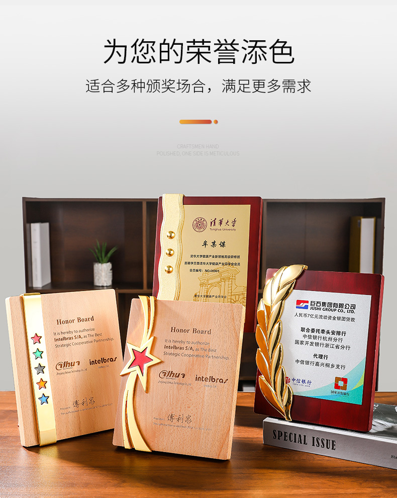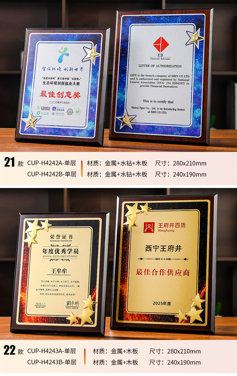 608 / 木质麦穗五星奖牌异形奖牌授权牌挂墙牌木托荣誉牌会员颁奖授权书
