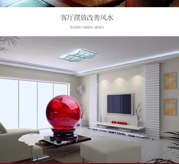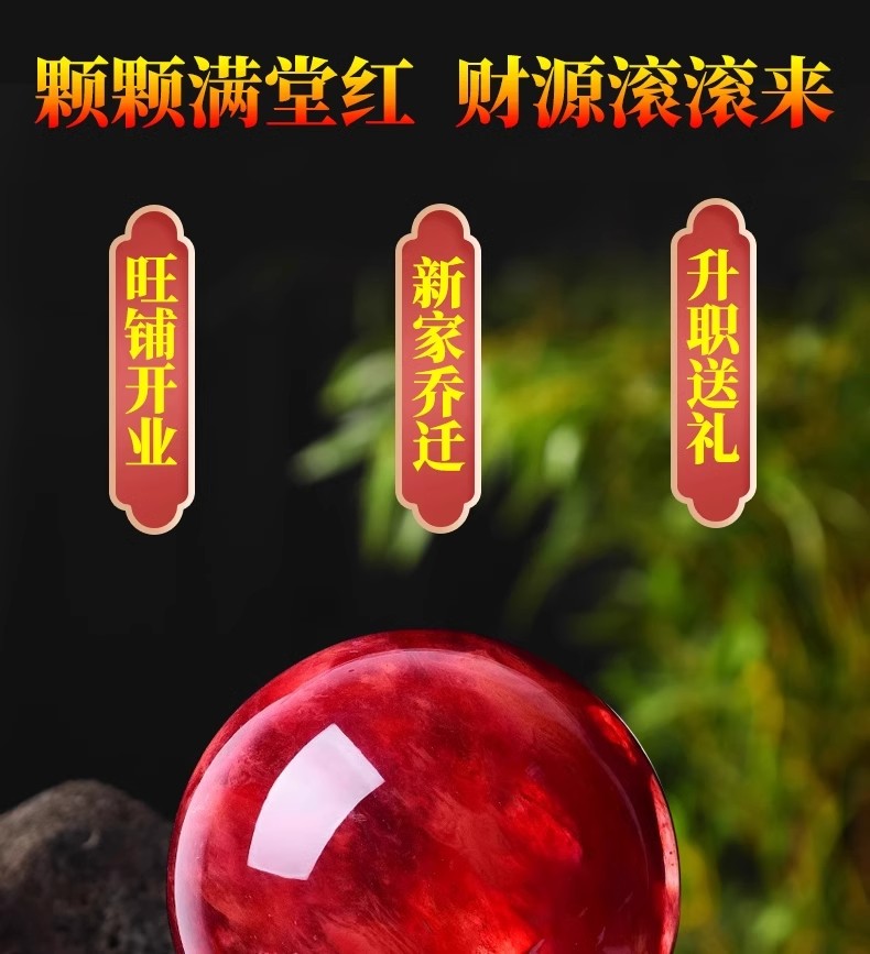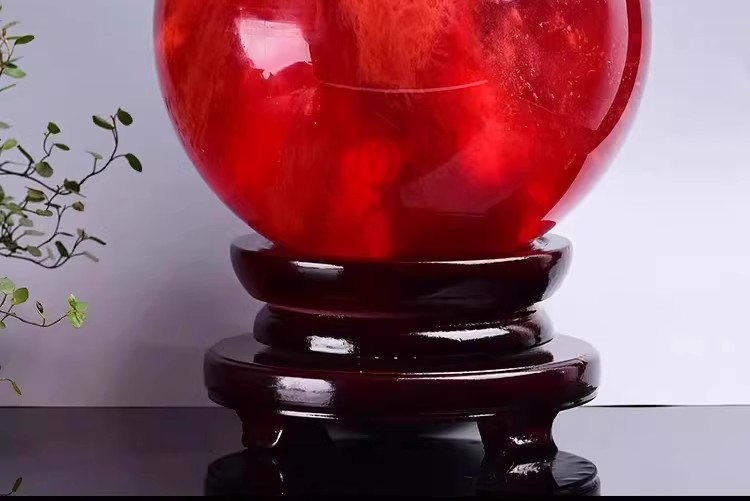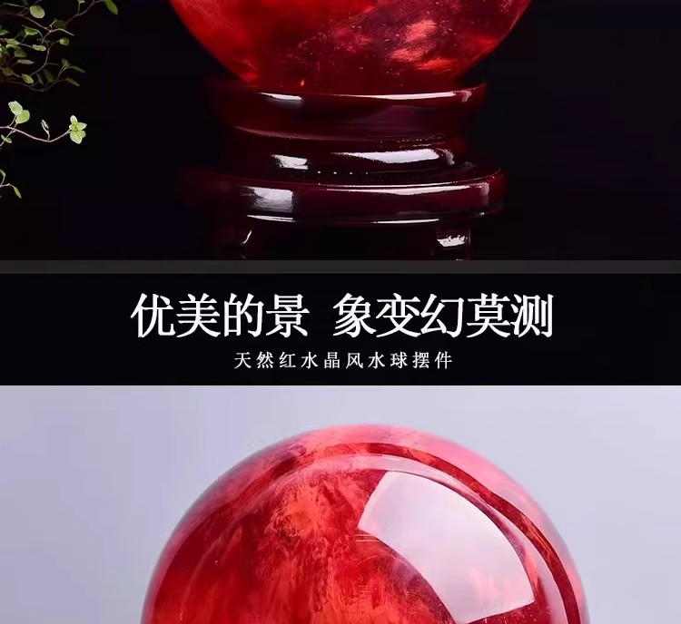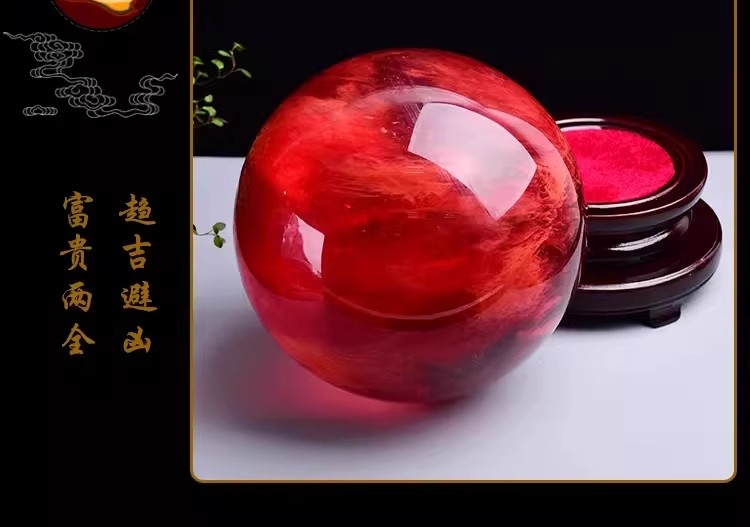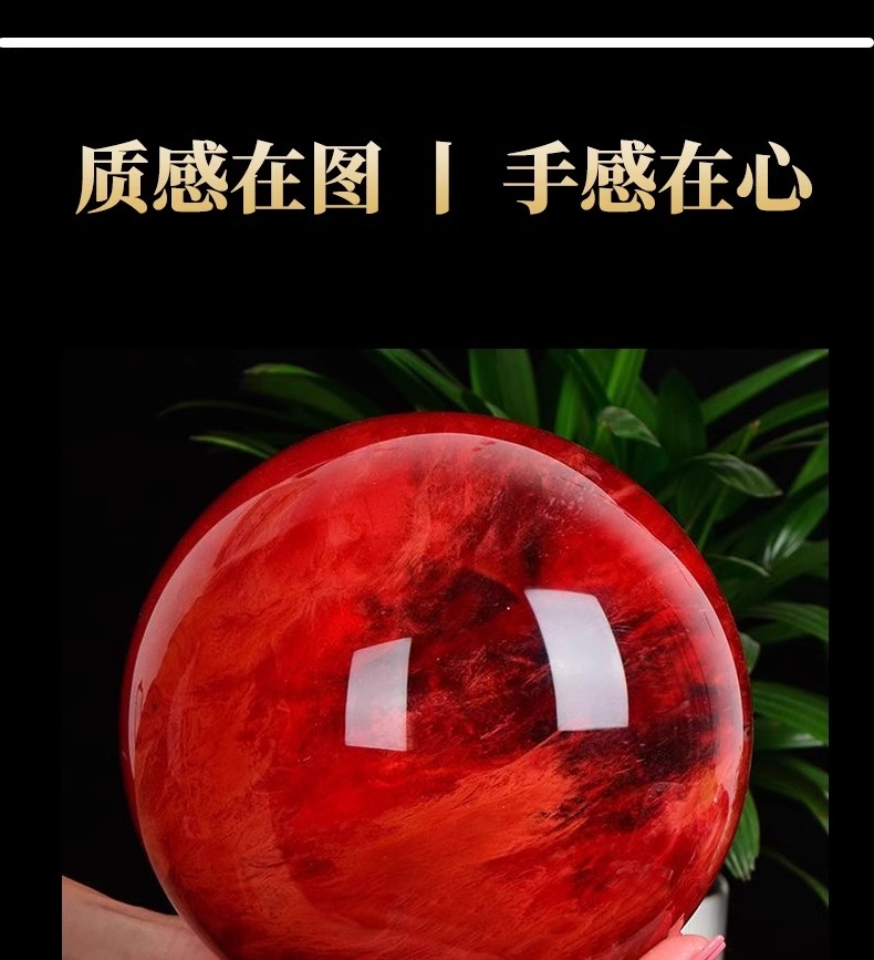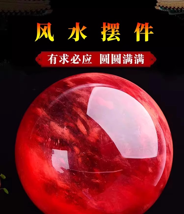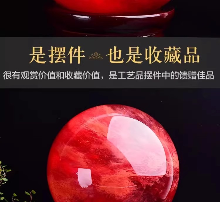 904 / 【天然红色水晶球】真原石大红吉祥珠圆形鸿运球装饰摆件办公室火属性