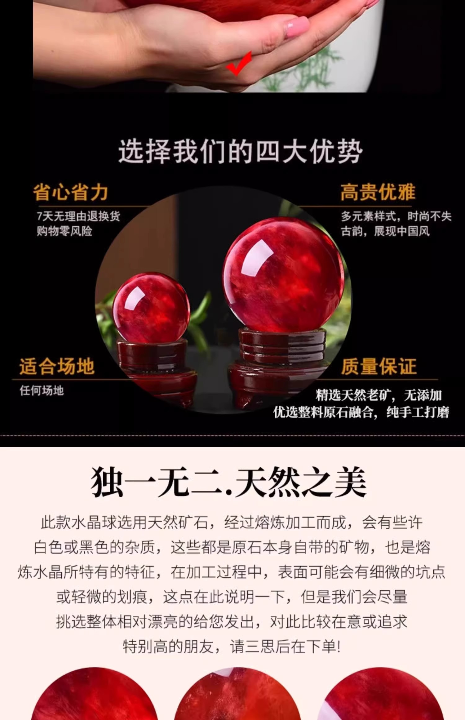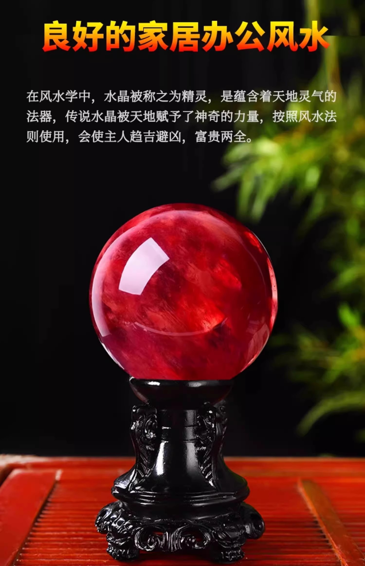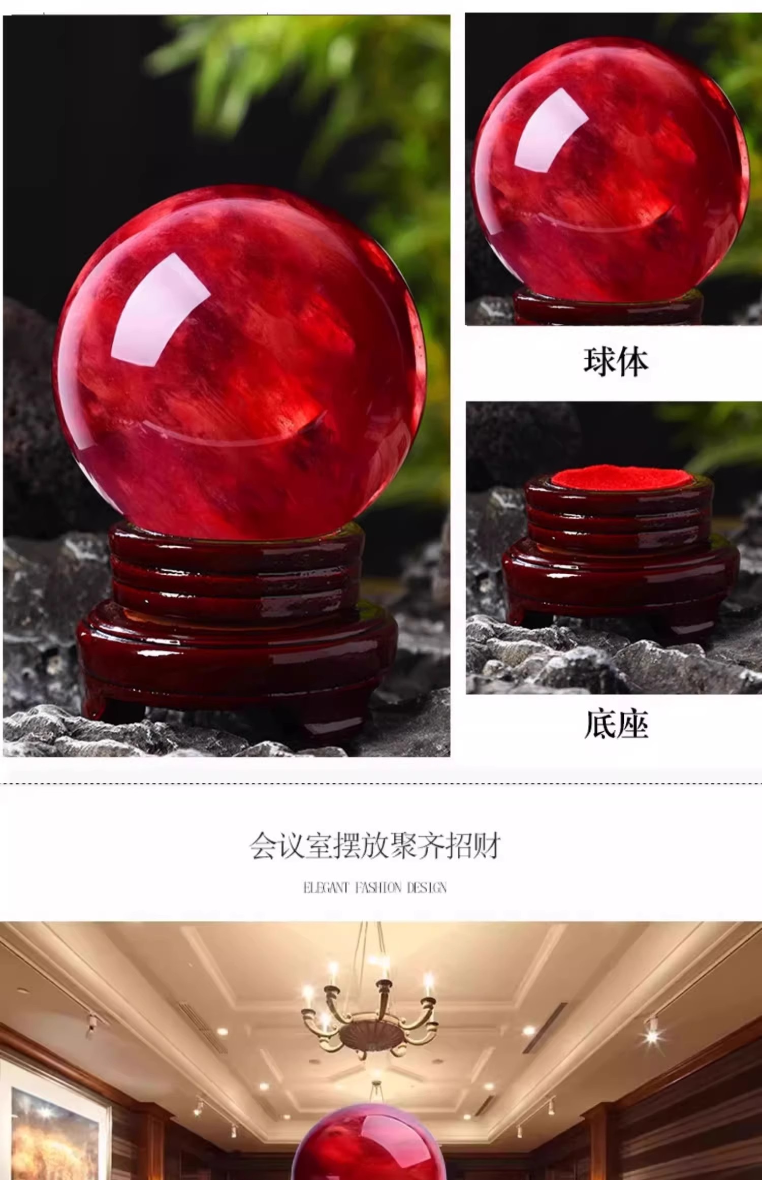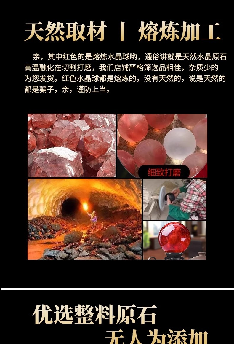 904 / 【天然红色水晶球】真原石大红吉祥珠圆形鸿运球装饰摆件办公室火属性