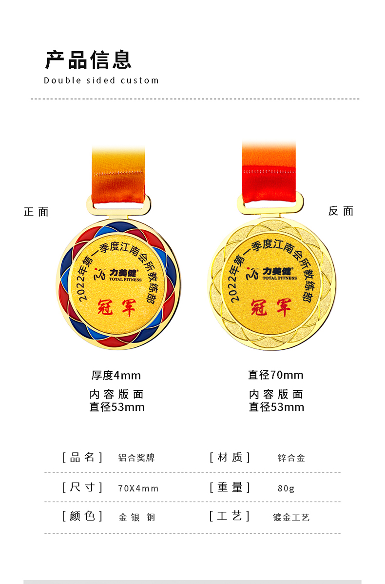 641 / 水晶金属奖牌定制篮球运动会马拉松学校运动会冠军定做荣誉挂牌