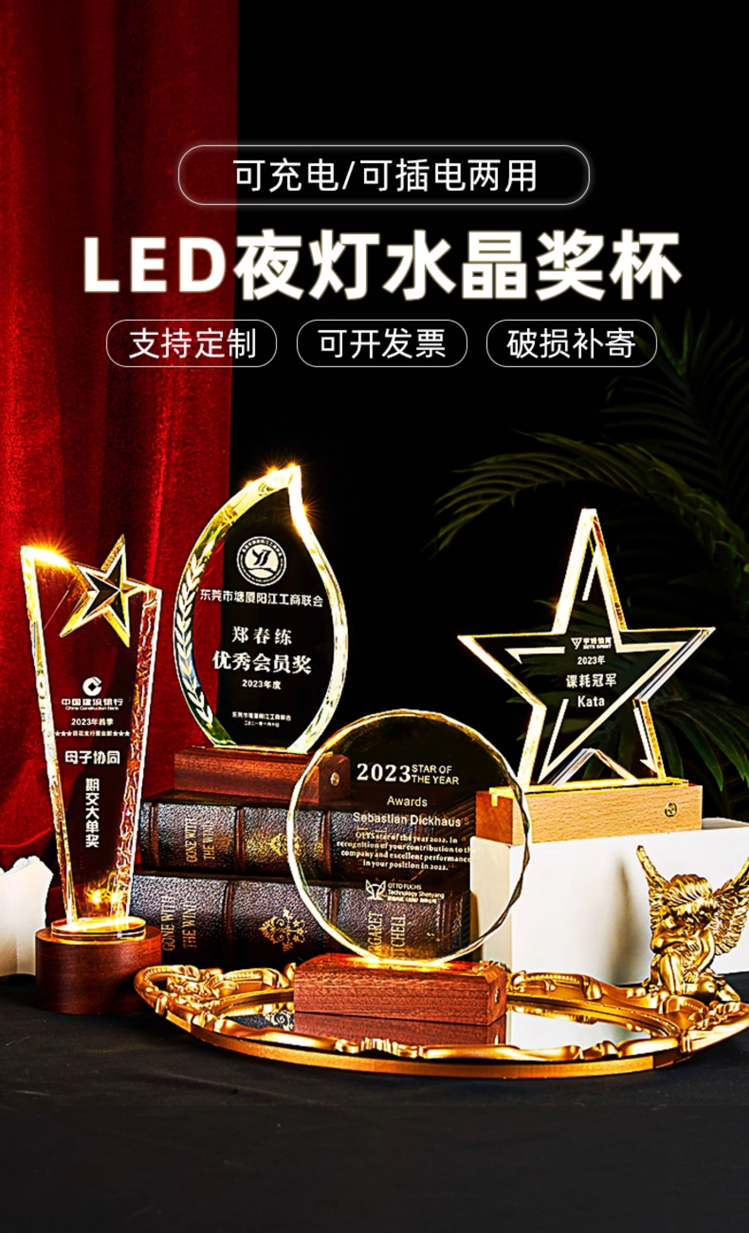 362 / 水晶奖杯订制发光高档实木创意优秀员工定制公司年会颁奖牌纪念品