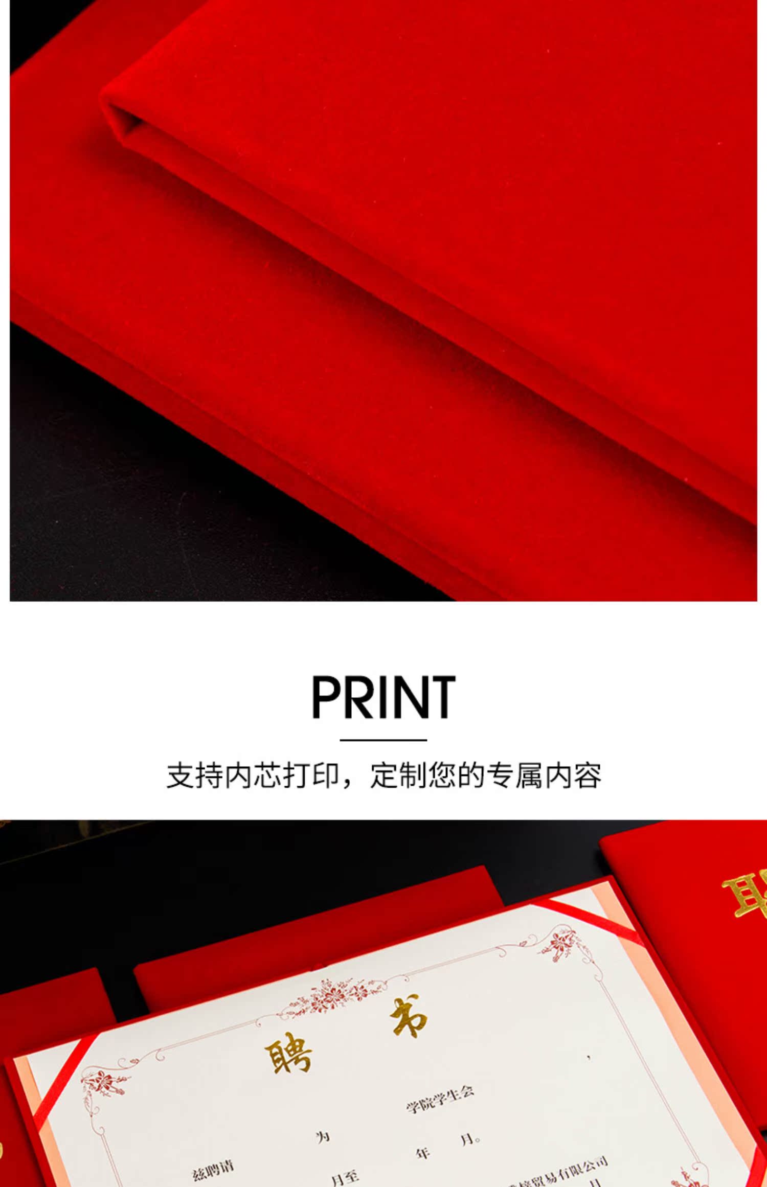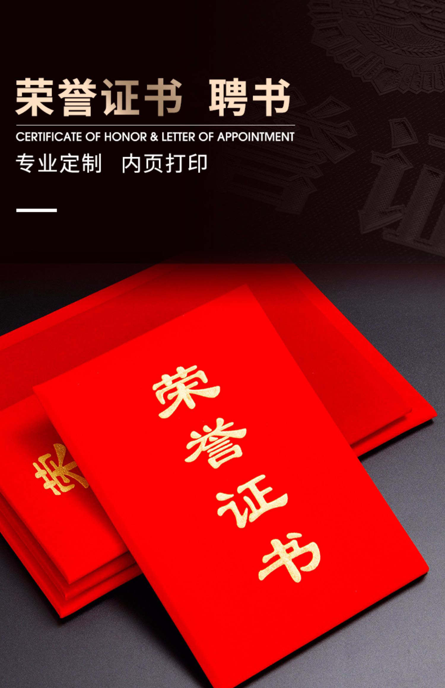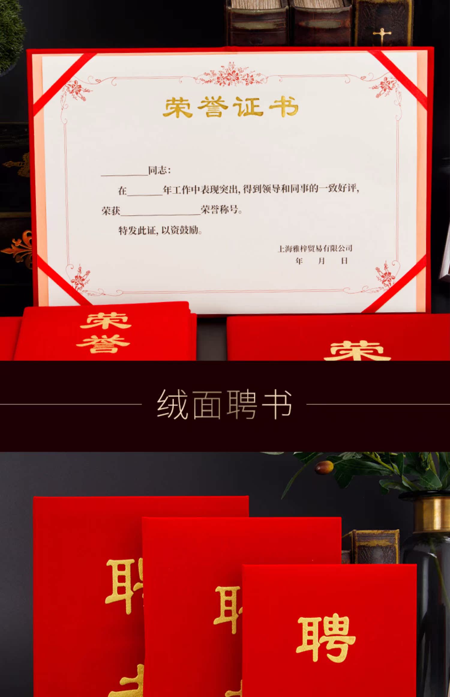 1065 / 定制荣誉证书聘书外壳制作内页打印A4内芯封面封皮定做优秀员工奖状获奖培训颁奖结业订制证书保护套年会表