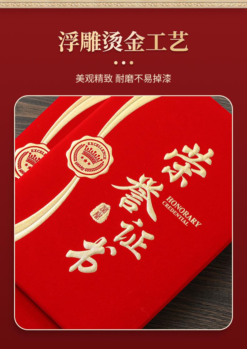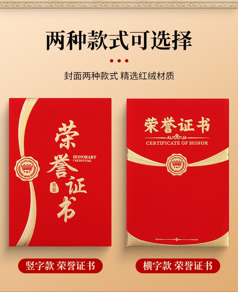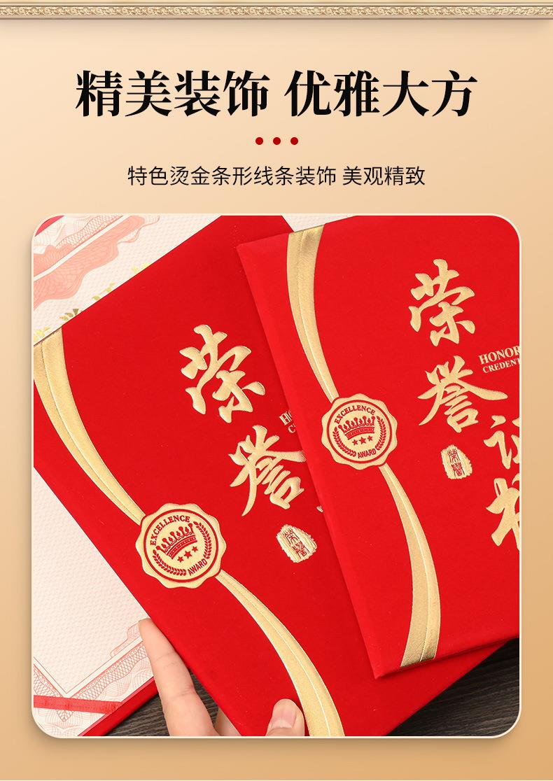 1072 / 高档荣誉证书志愿者荣誉证书证件书封面外壳封皮内芯打印企业优秀员工表扬信绒面录取通知聘书获奖荣誉证书