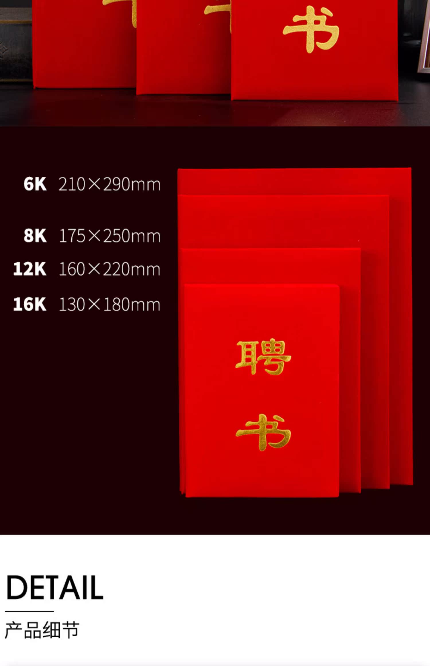 1075 / 定制荣誉证书聘书外壳制作内页打印A4内芯封面封皮定做优秀员工奖状获奖培训颁奖结业订制证书保护套年会表