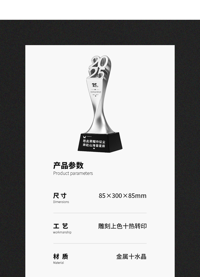 1076 / 奖杯定制金属创意2025高档大气优秀员工销售冠军年会颁奖纪念品