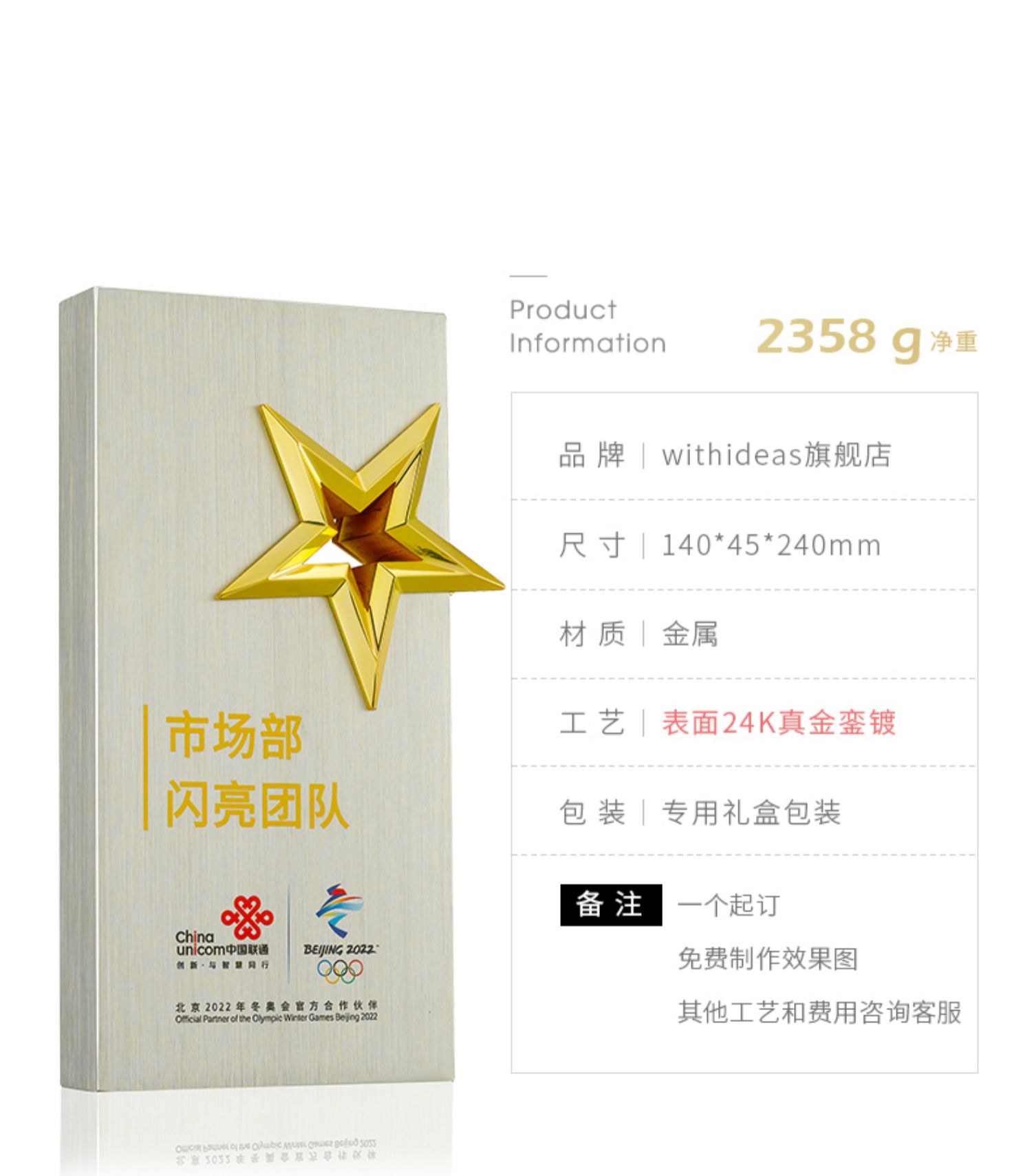 1079 / 创意金属五角星奖杯定制定做授权牌公司年会颁奖杰出员工刻字奖牌