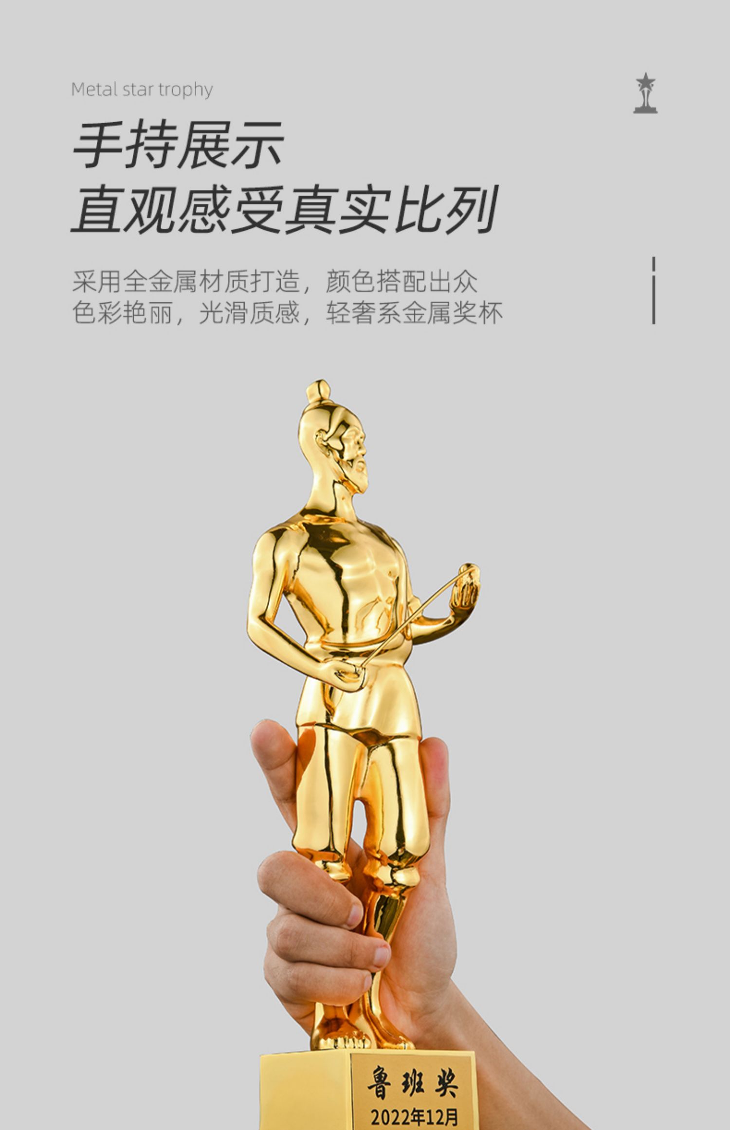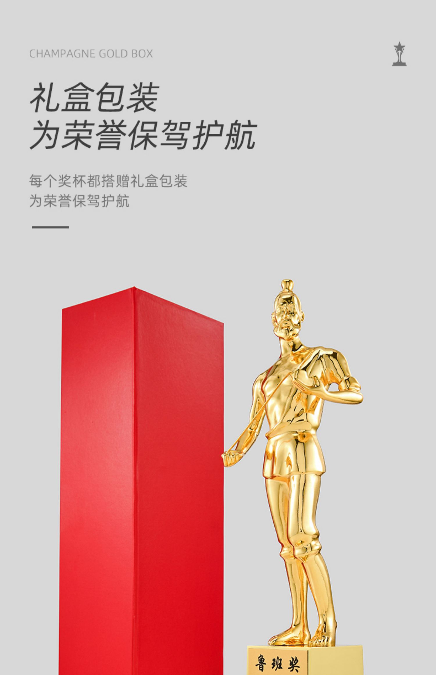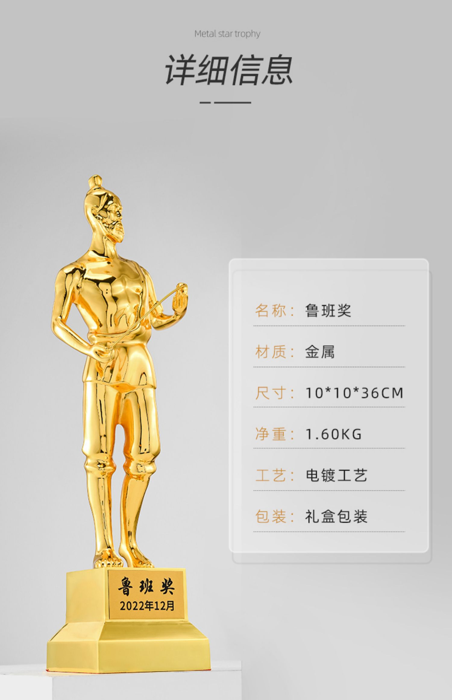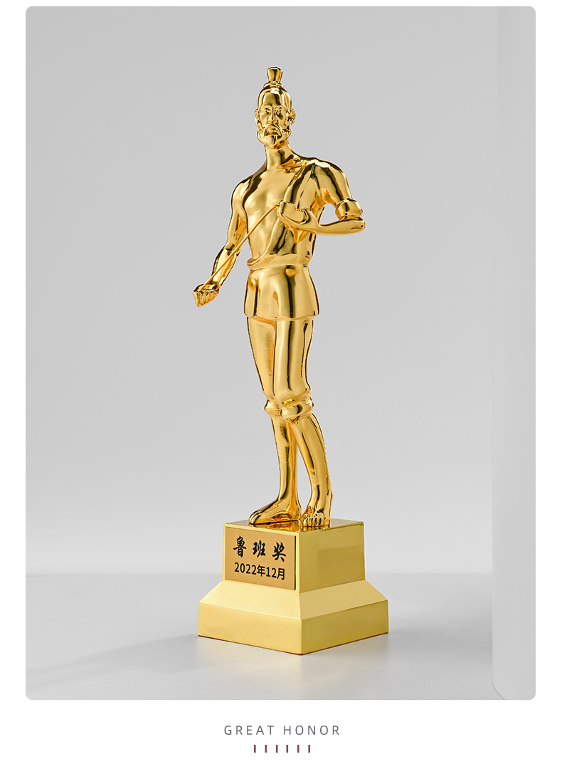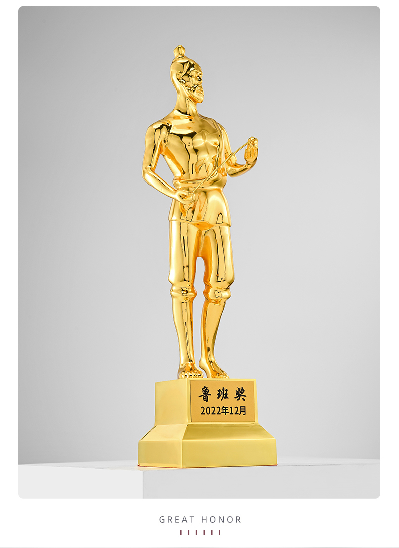 1091 / 鲁班奖杯人物雕像纪念品定制工匠精神颁奖纪念奖品定做金属奖杯