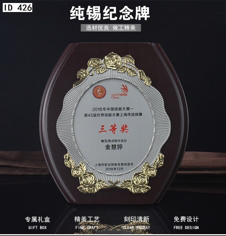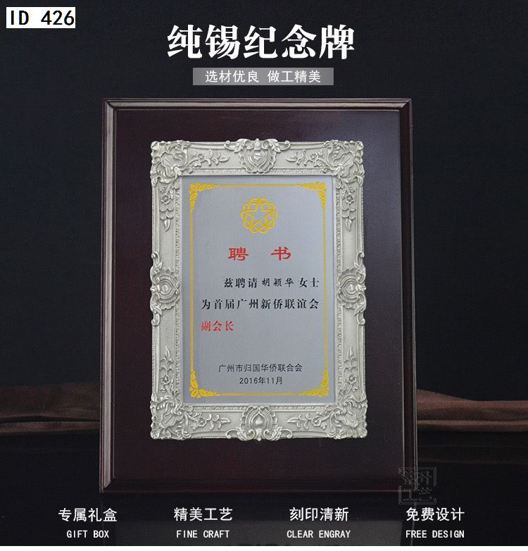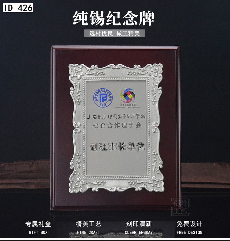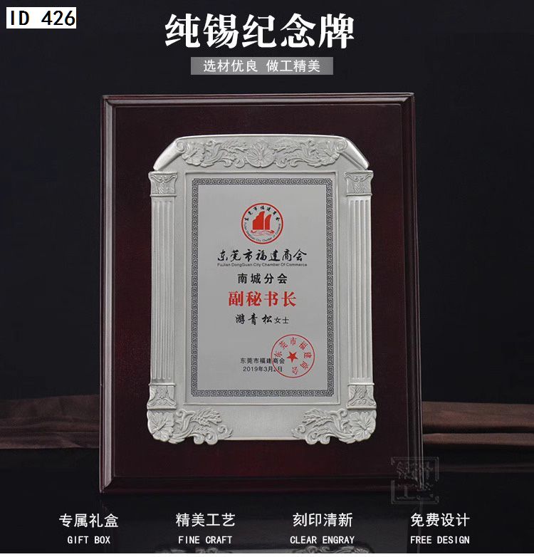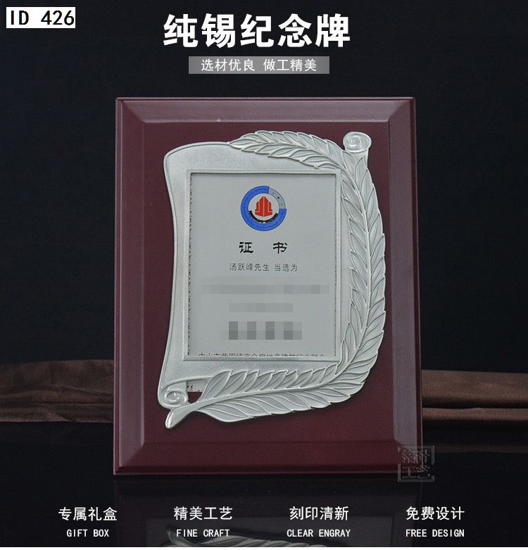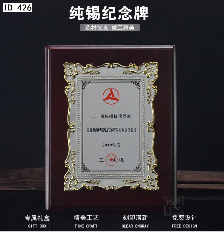 506 / 【纯锡奖牌】锡牌定制定做感谢牌授权牌证书木托聘书奖状