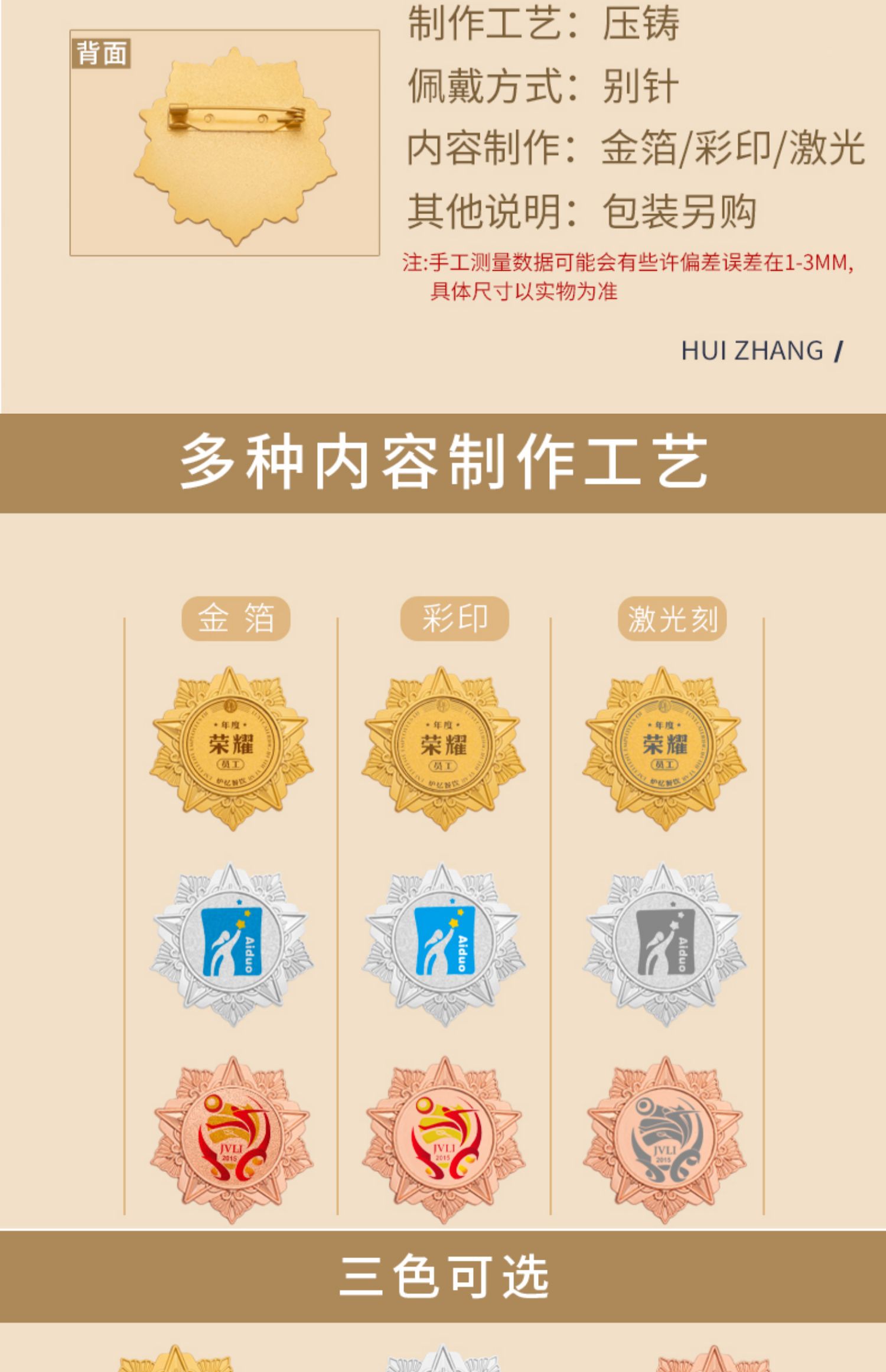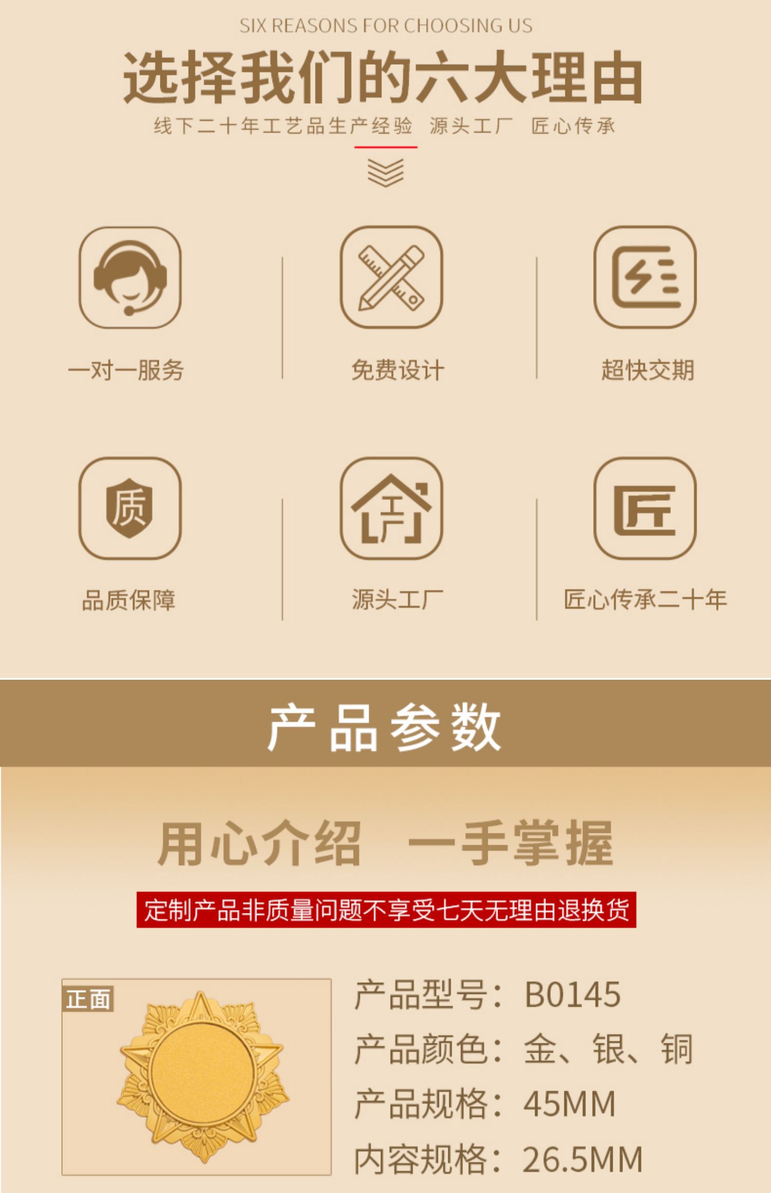 617 / 徽章定做儿童奖励班徽金牌销售胸章周年庆校徽定制优秀员工勋奖章