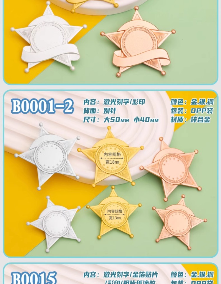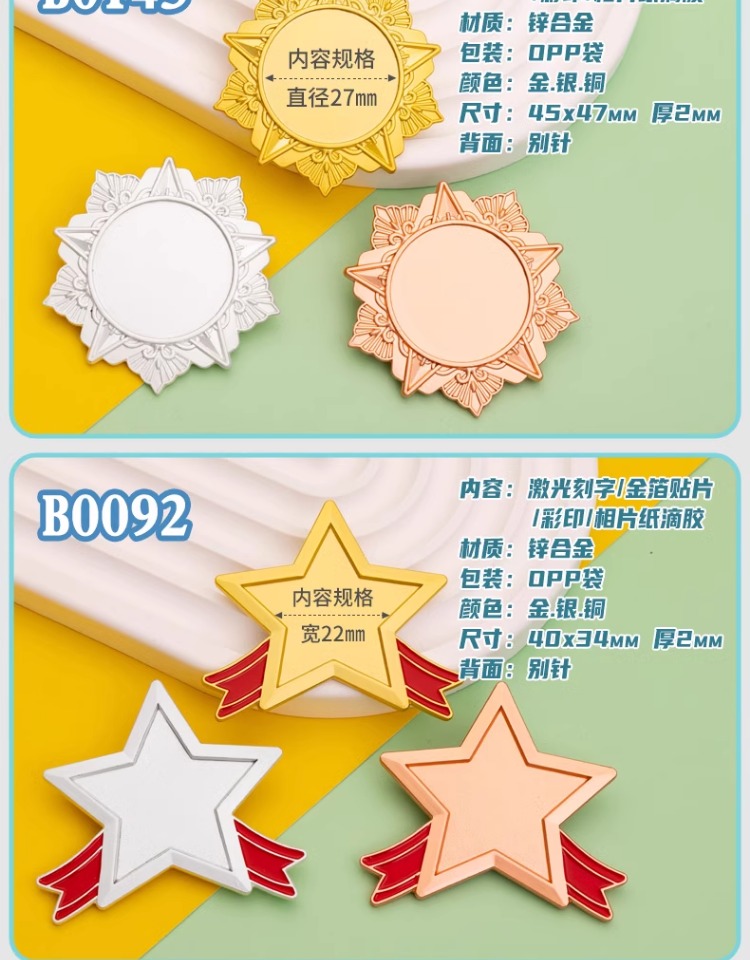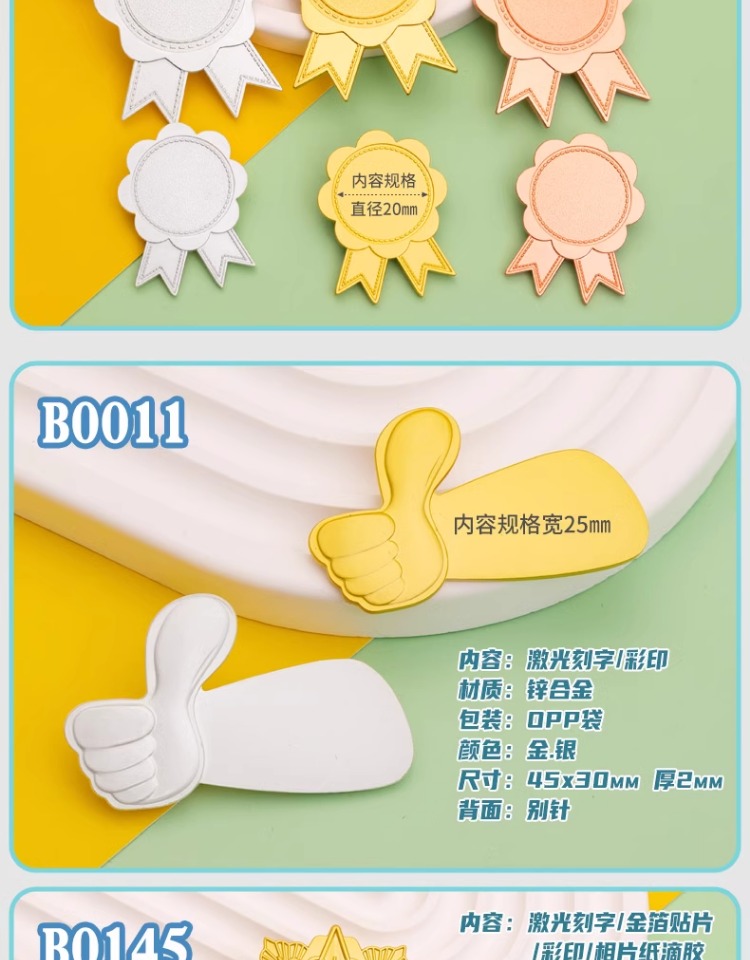 702 / 奖章勋章夏令营小奖牌胸章勇敢之星徽章升班奖励幼儿园奖章