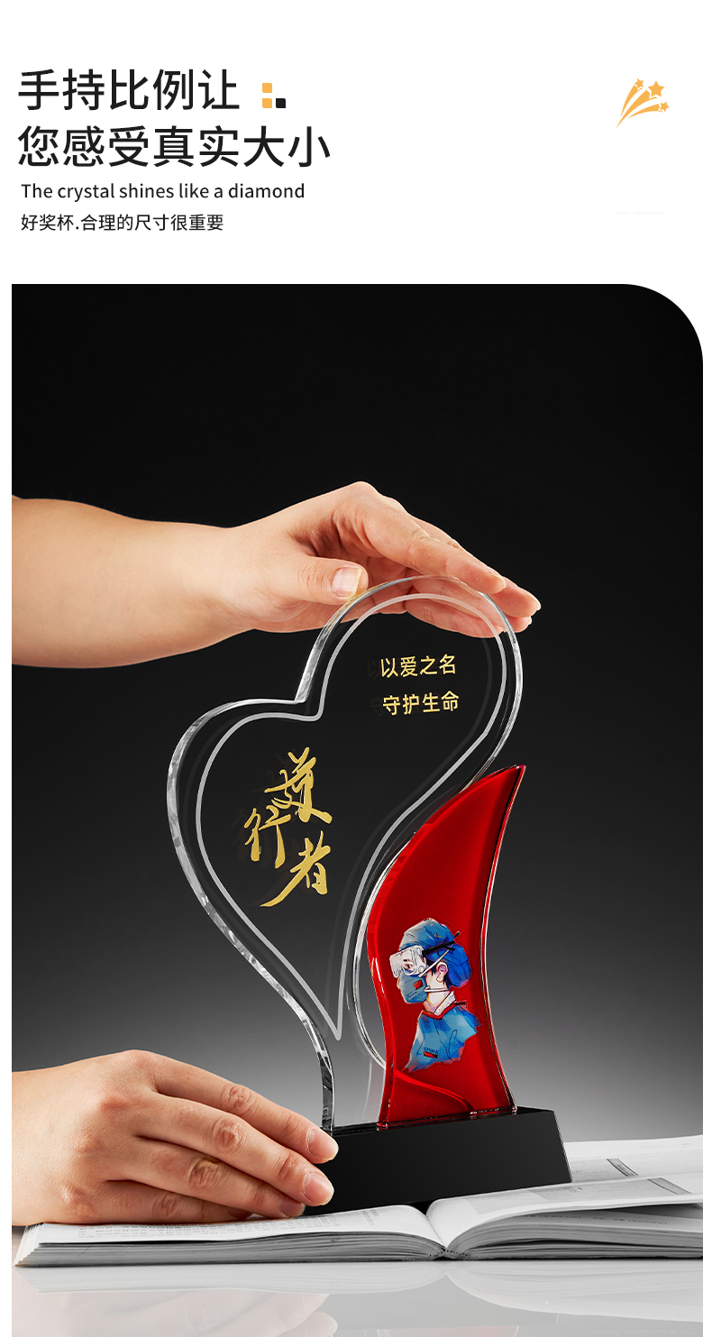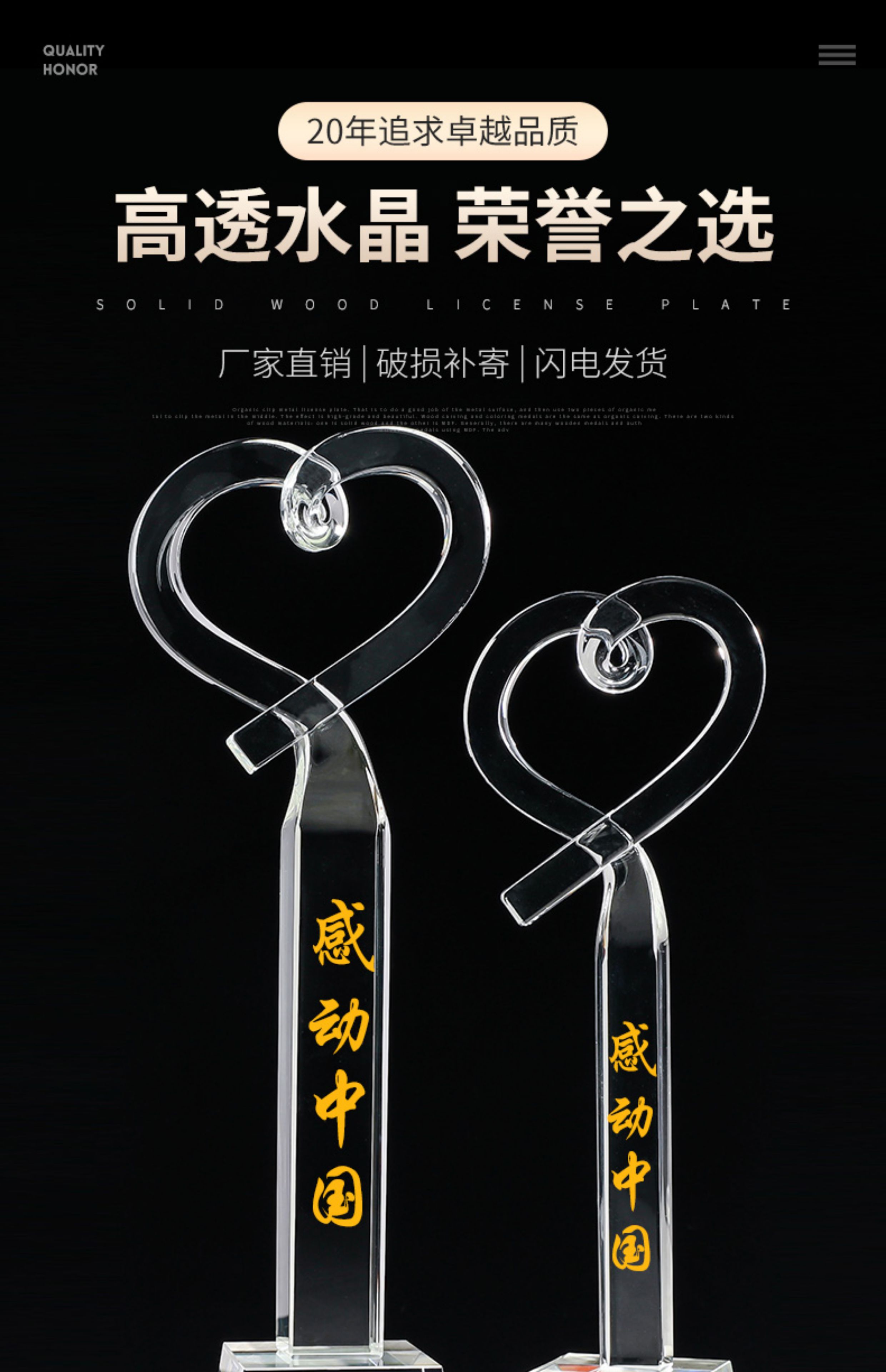 433 / 【爱心主题】公益慈善爱心水晶奖杯定制好老公好老婆奖心形妈妈生日礼物