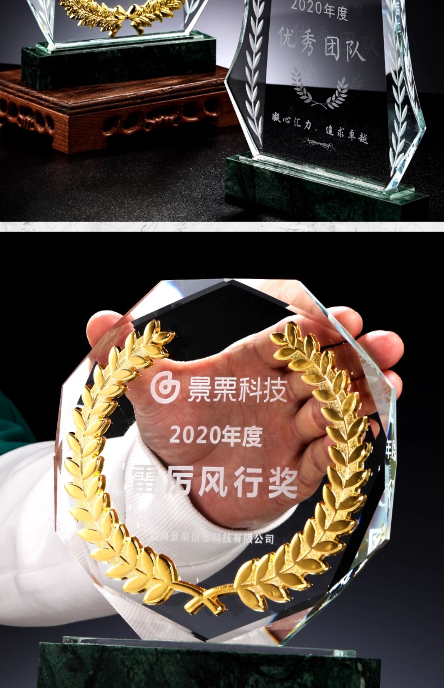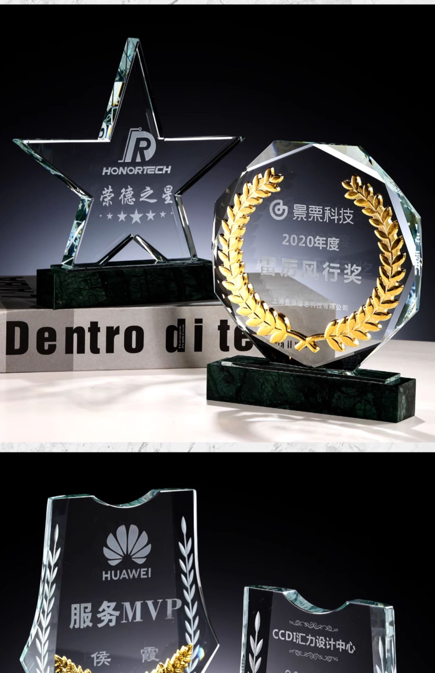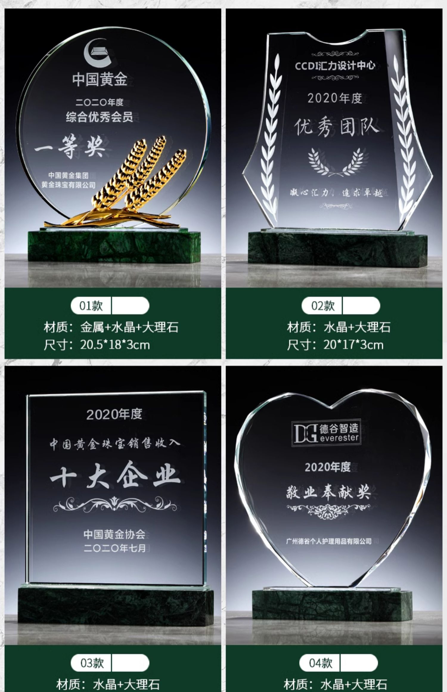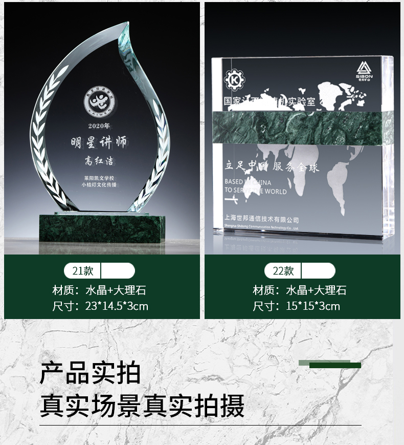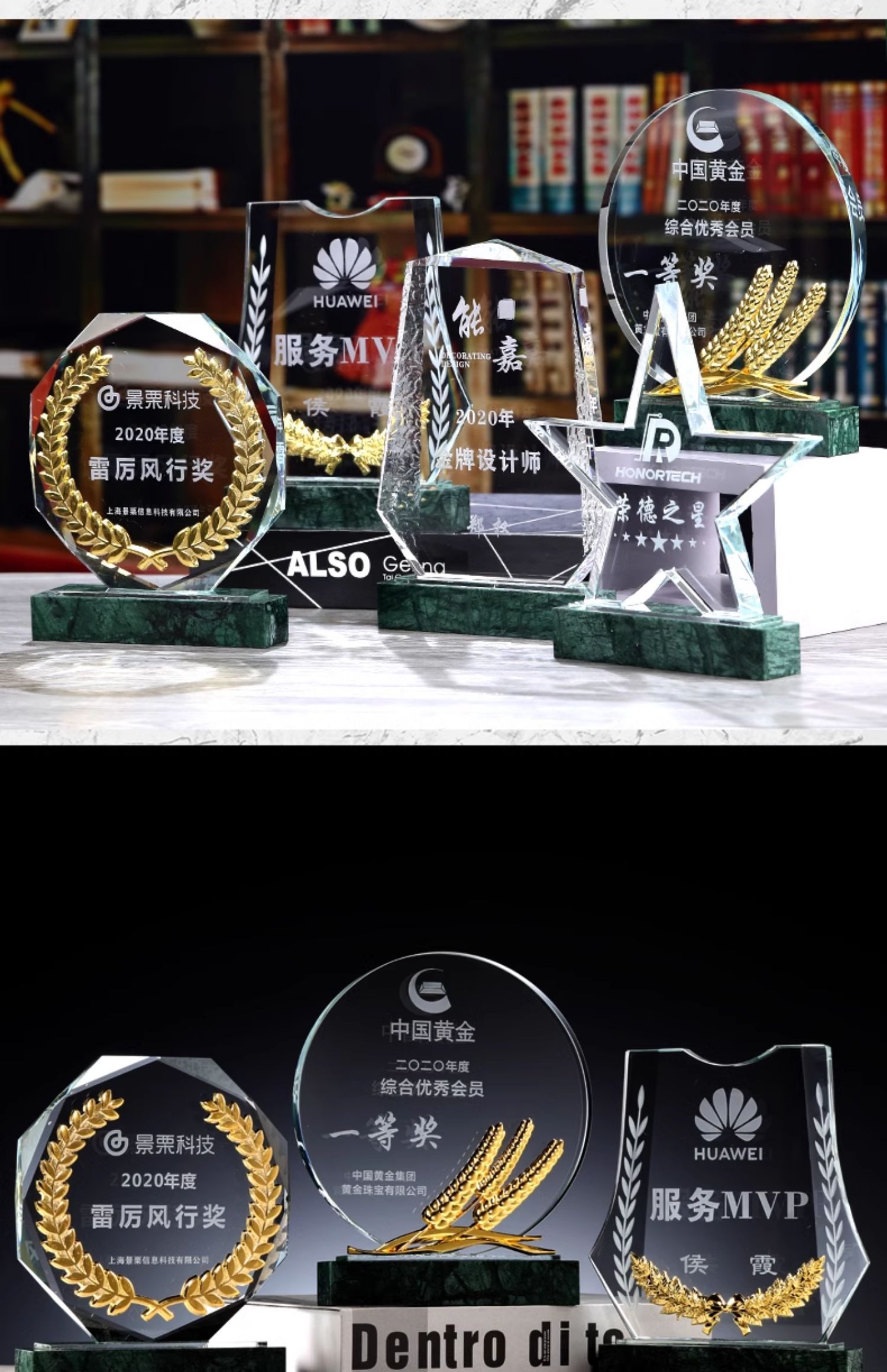 242 / 【大理石水晶】绿色大理石奖杯定制麦穗水晶奖牌授权牌定制科技奖品创意设计刻字