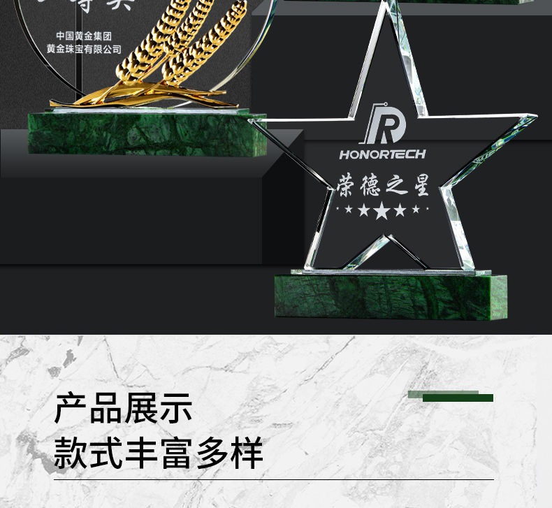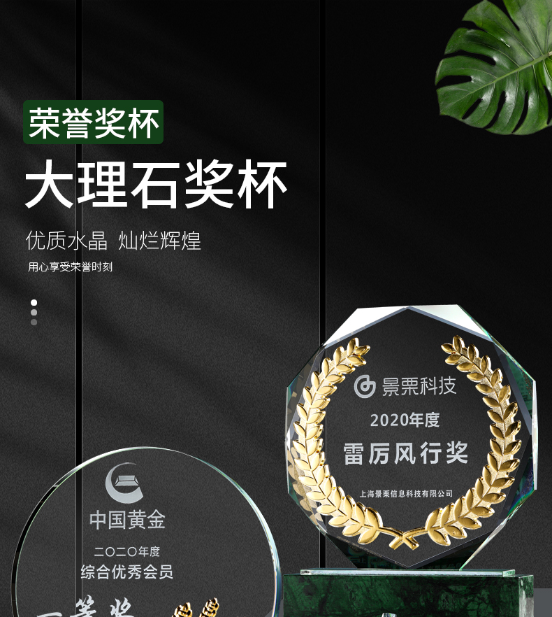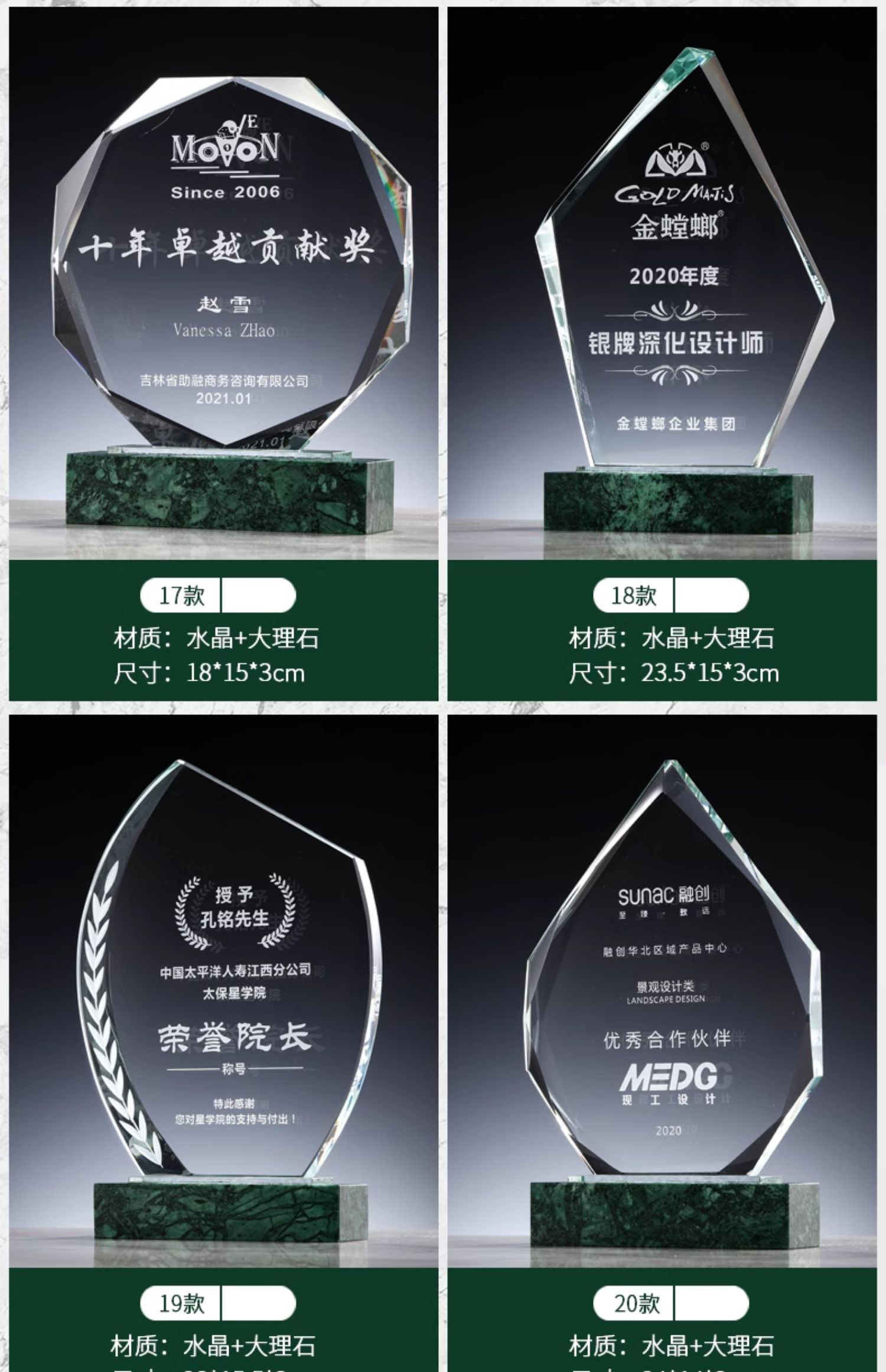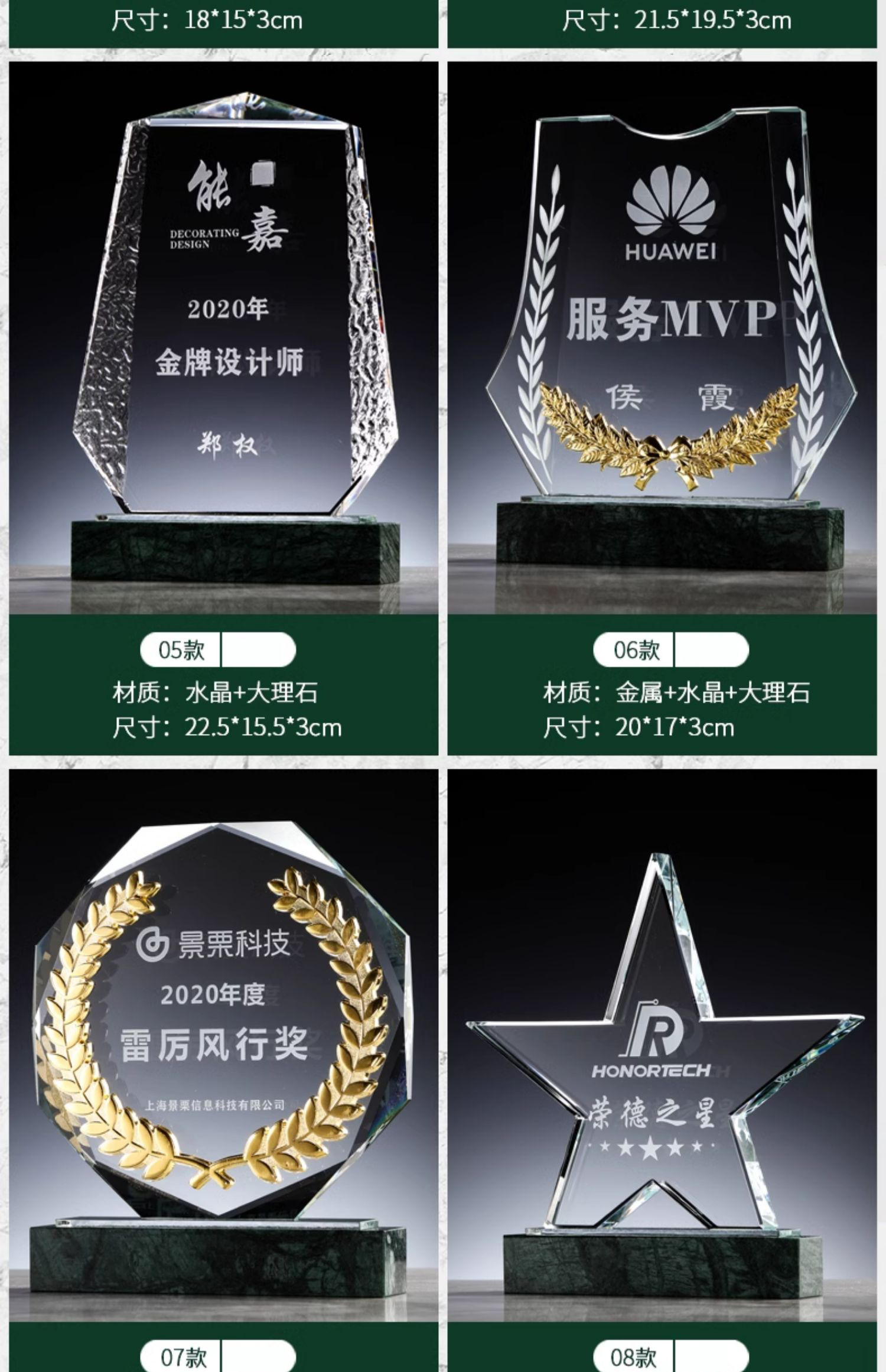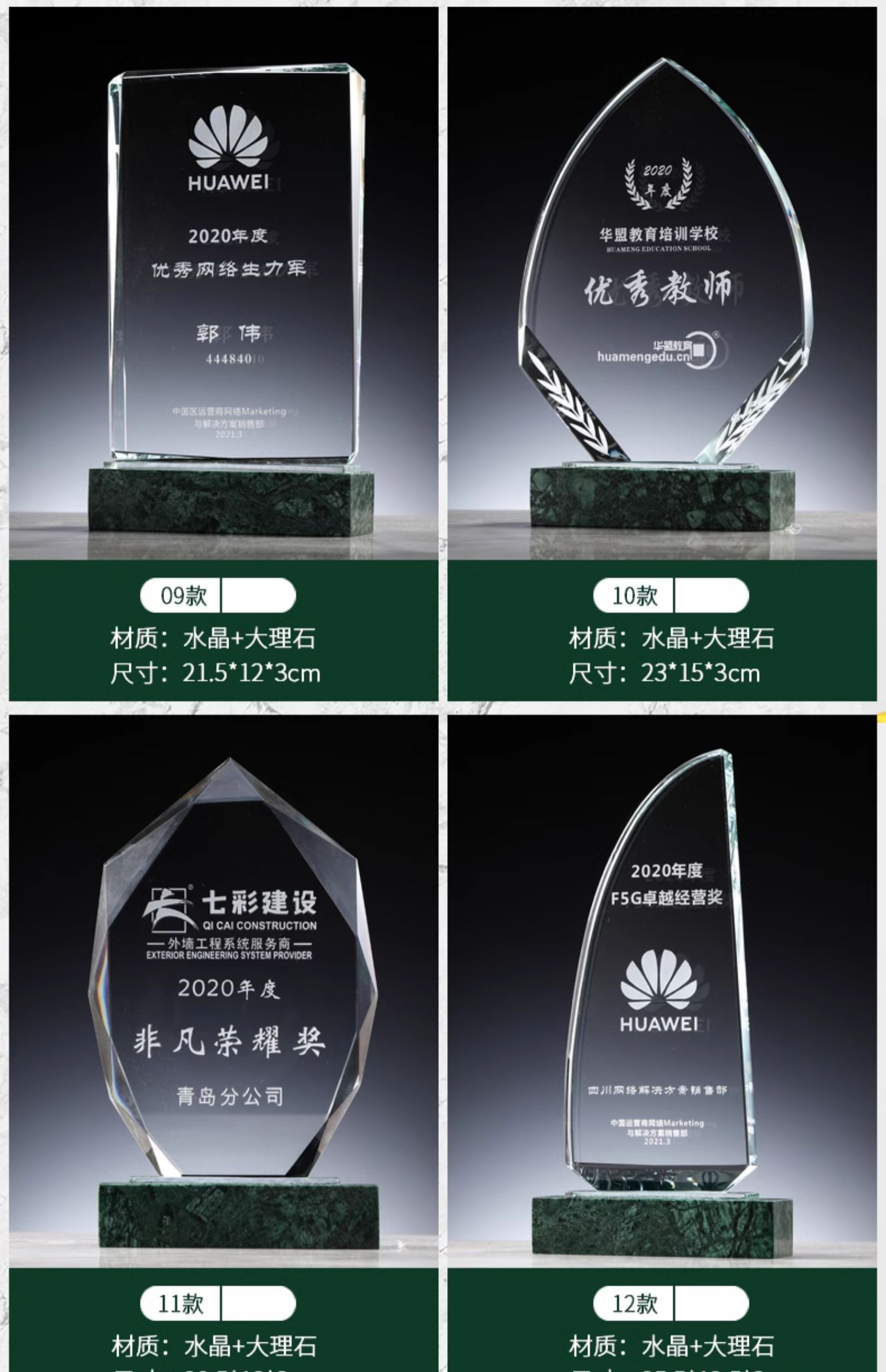 242 / 【大理石水晶】绿色大理石奖杯定制麦穗水晶奖牌授权牌定制科技奖品创意设计刻字