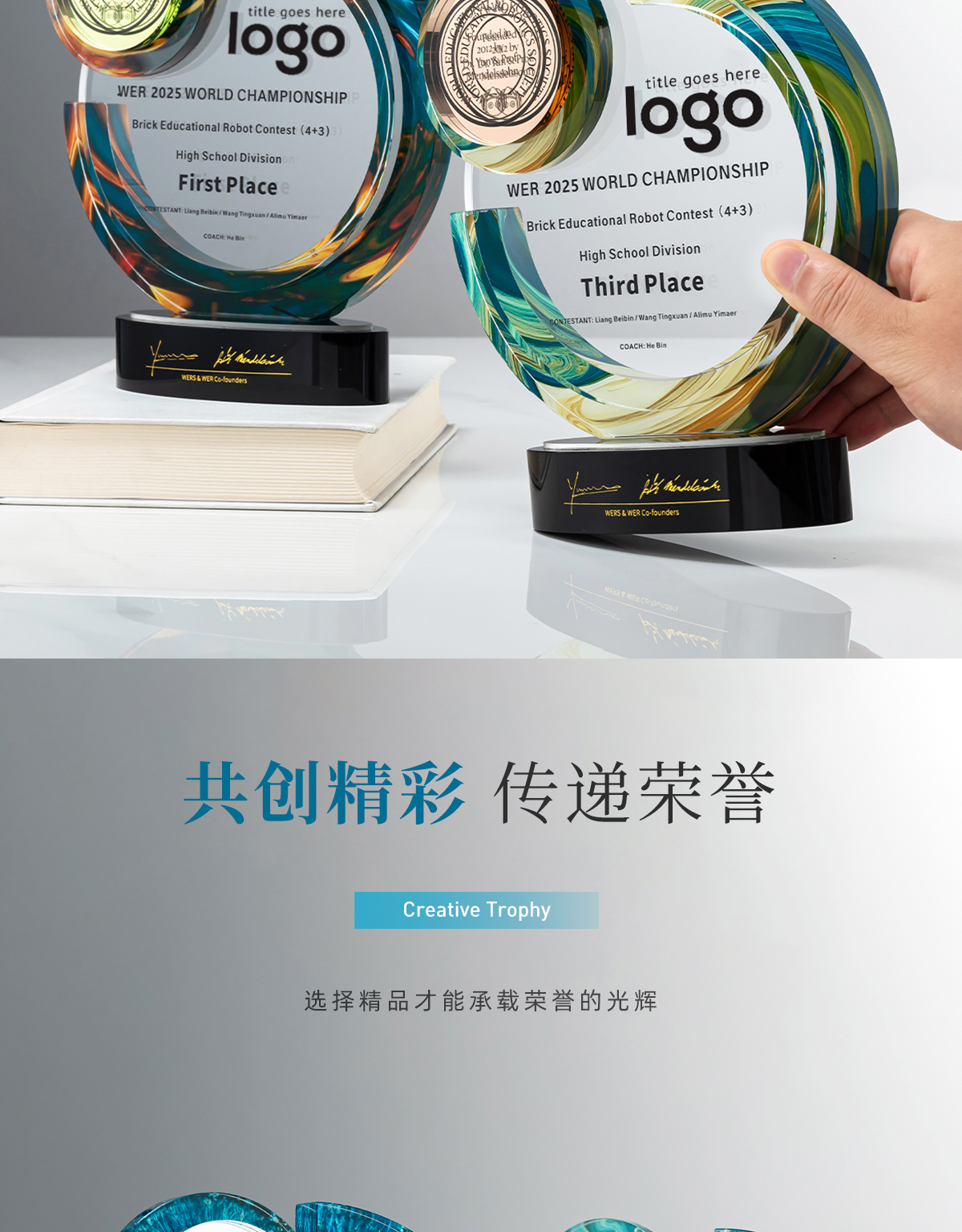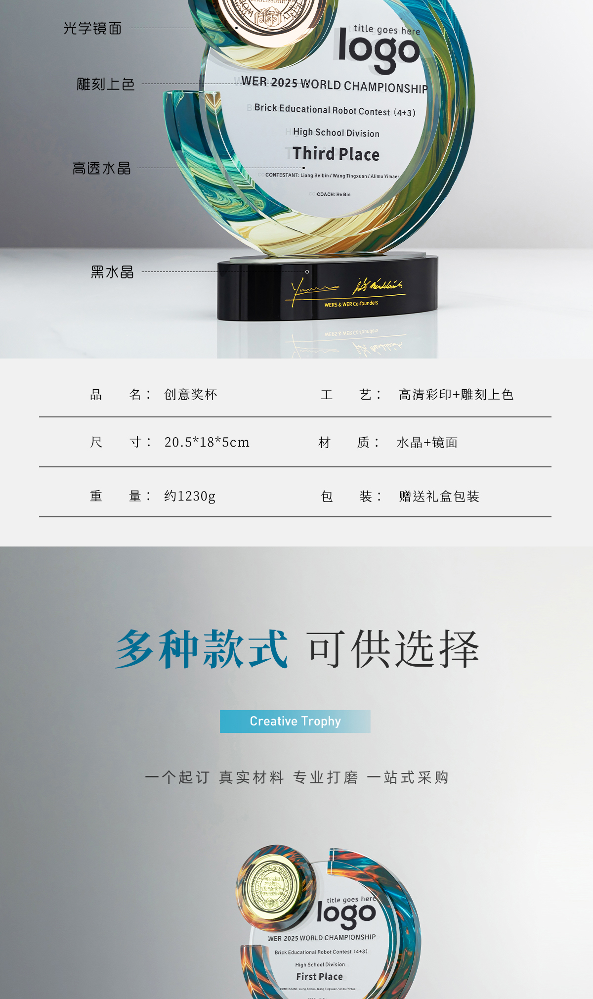 158 / 创意水晶奖杯定制刻字比赛奖牌员工周年纪念奖座定做