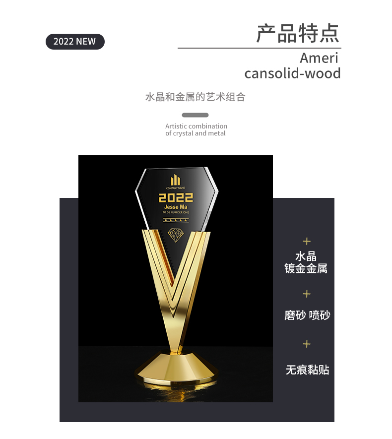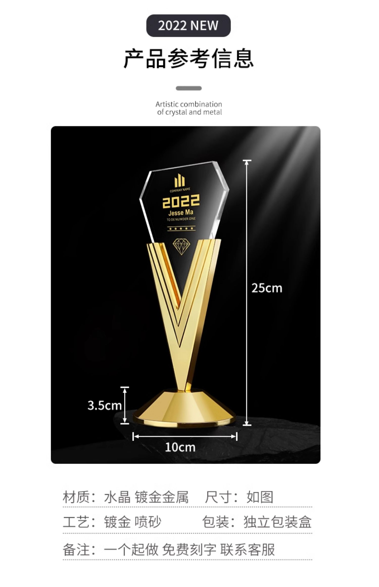 381 / 金属奖杯定制高端水晶创意比赛冠军奖牌年会年会员工团队颁奖定做