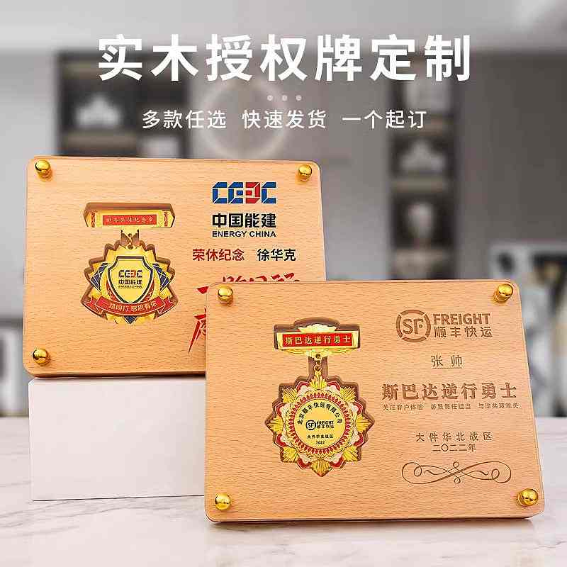 616 / 成都勋章定做折叠木板奖章退休十周年胸徽章年会优秀员…