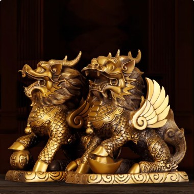 53 / 成都麒麟摆件全铜大号公母一对祥瑞麒麟家用办公室桌面装…