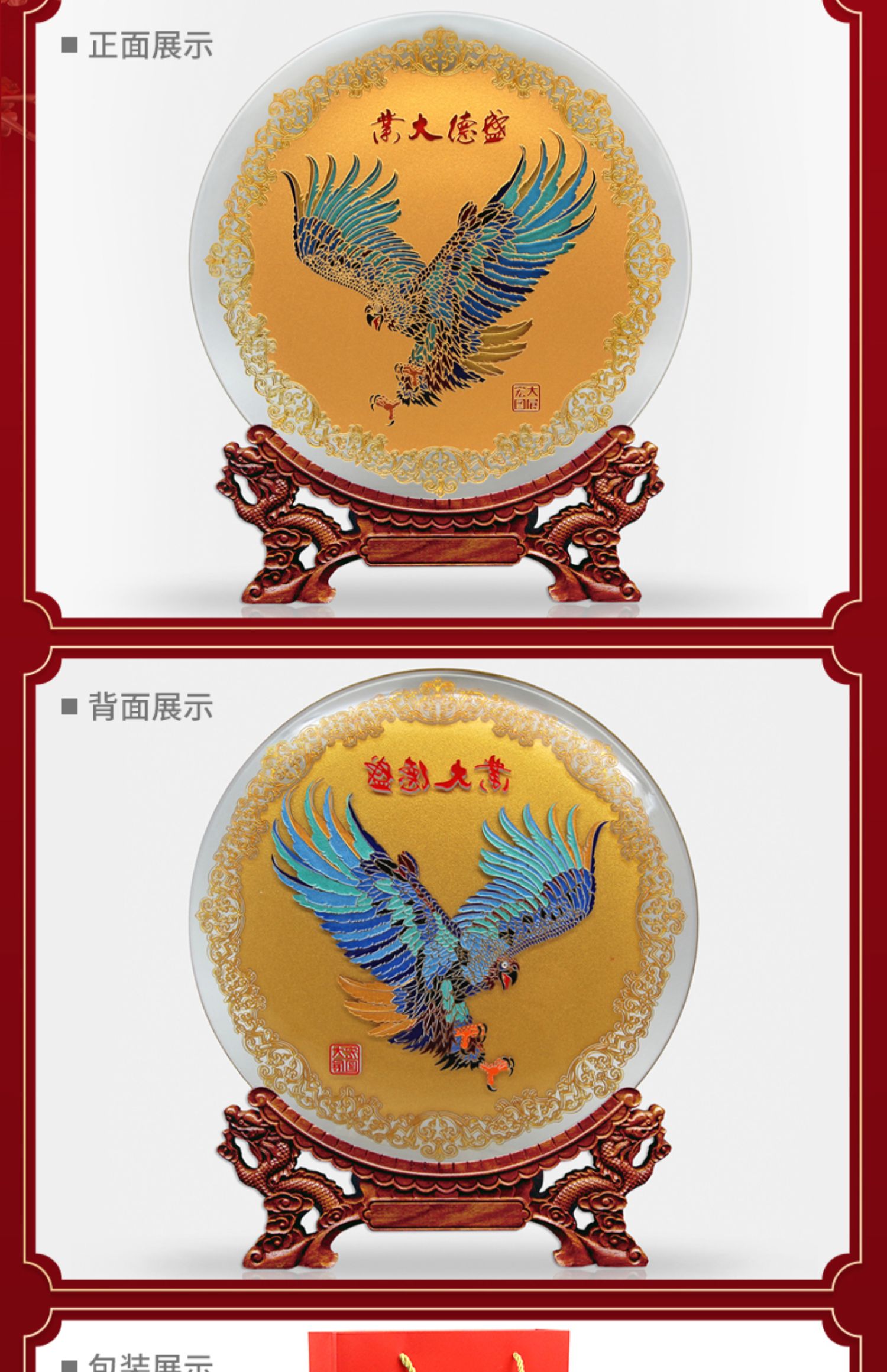 7 / 雅琅晶大展宏图摆件客厅老板办公室家居装饰老鹰工艺品开业纪念盘