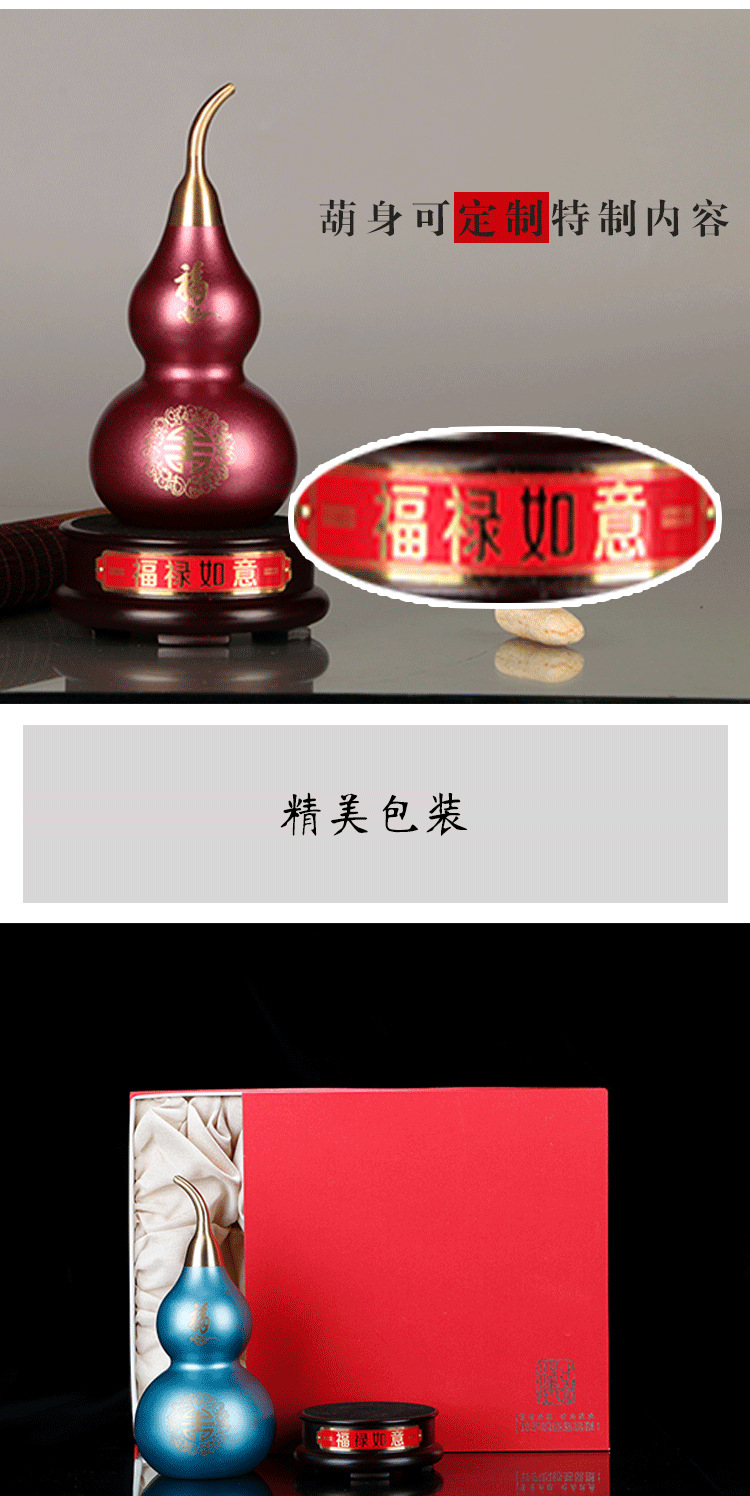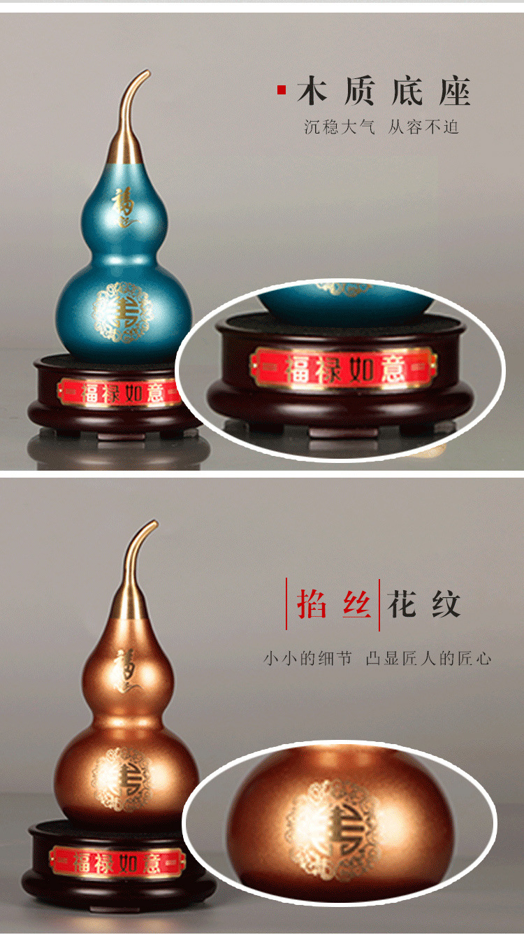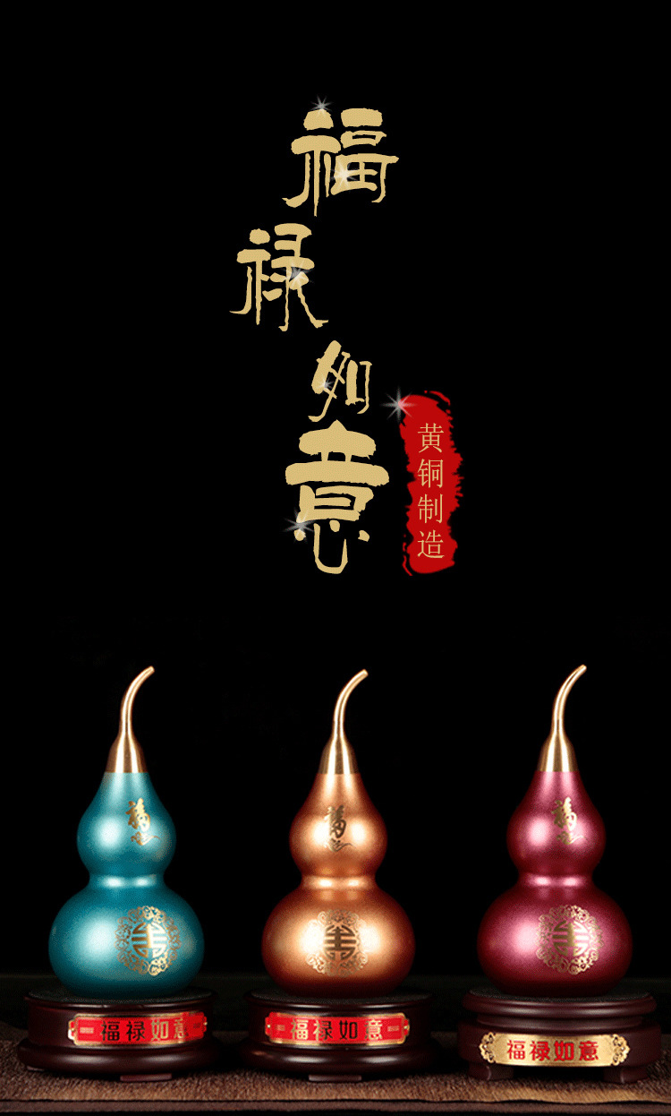 15 / 福禄如意喜上眉梢铜葫芦摆件金属创意黄铜工艺品刻字风水用品摆件批发