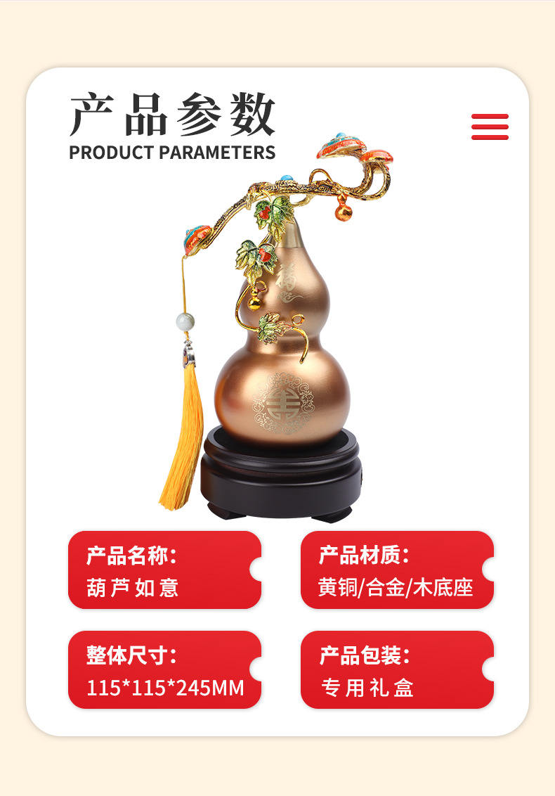 16 / 葫芦如意招财铜葫芦摆件创意新中式如意摆件乔迁年会礼物家居客厅酒柜装饰