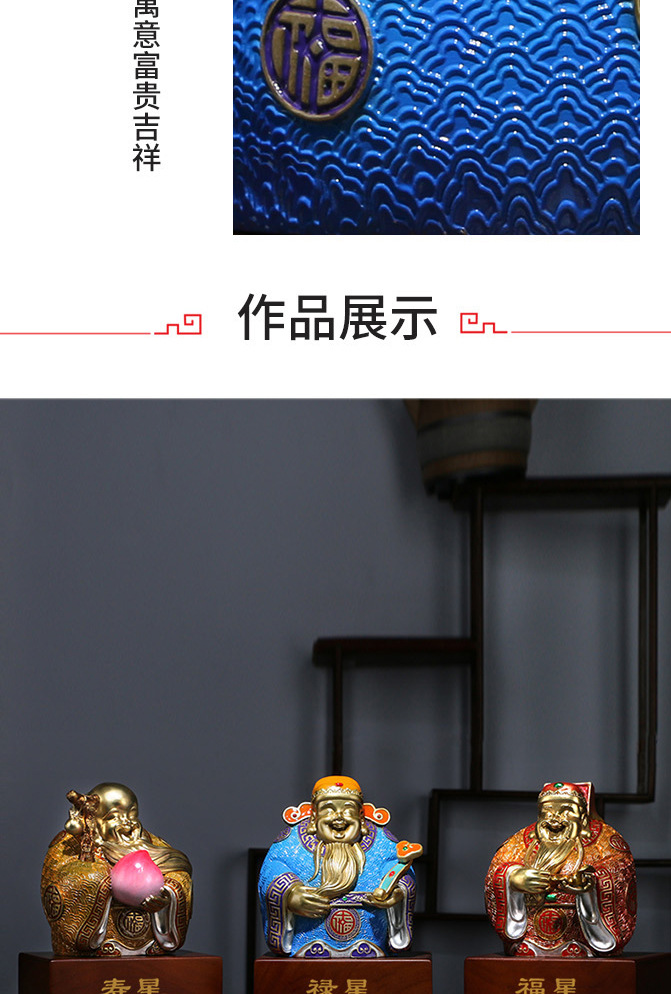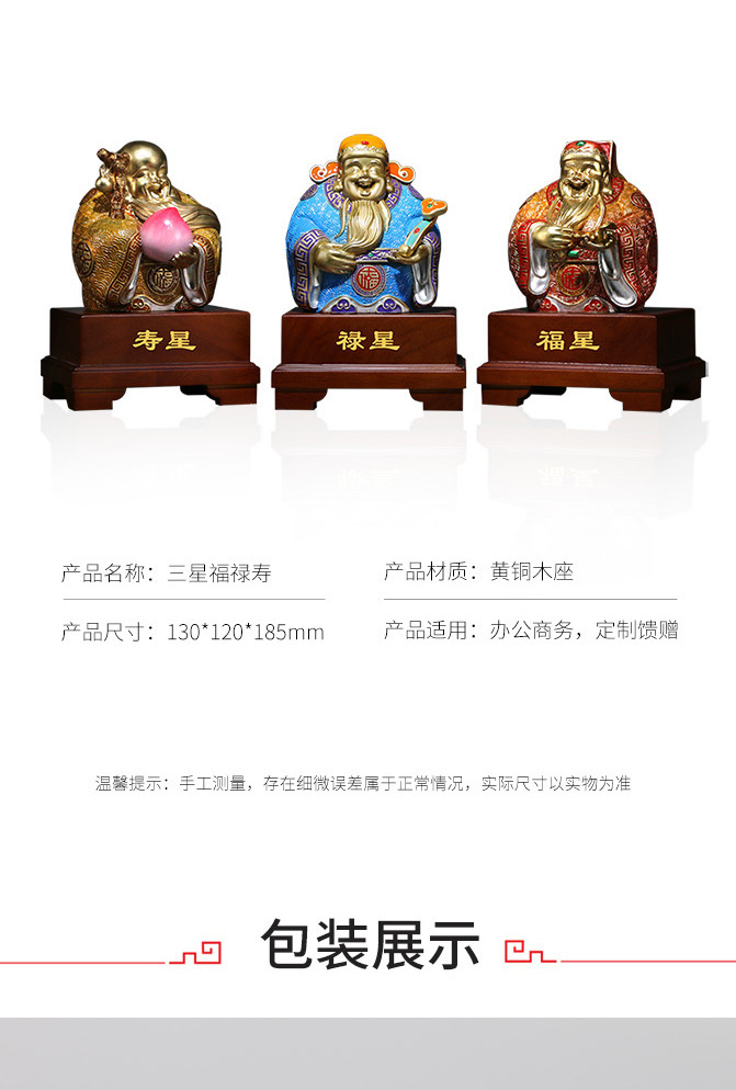 17 / 三星福禄寿福禄寿黄铜摆件工艺品中式客厅办公室桌面小摆件开业乔迁商务礼品
