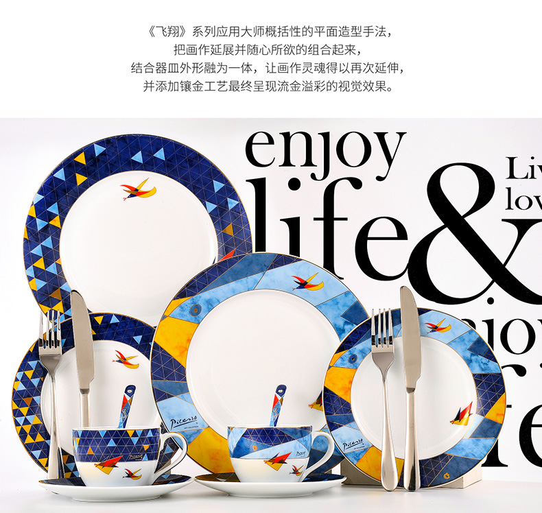 3 / Picasso毕加索西餐碗盘餐具整套 乔迁瓷器碟套装家用 毕加索《飞翔》西餐具2人食