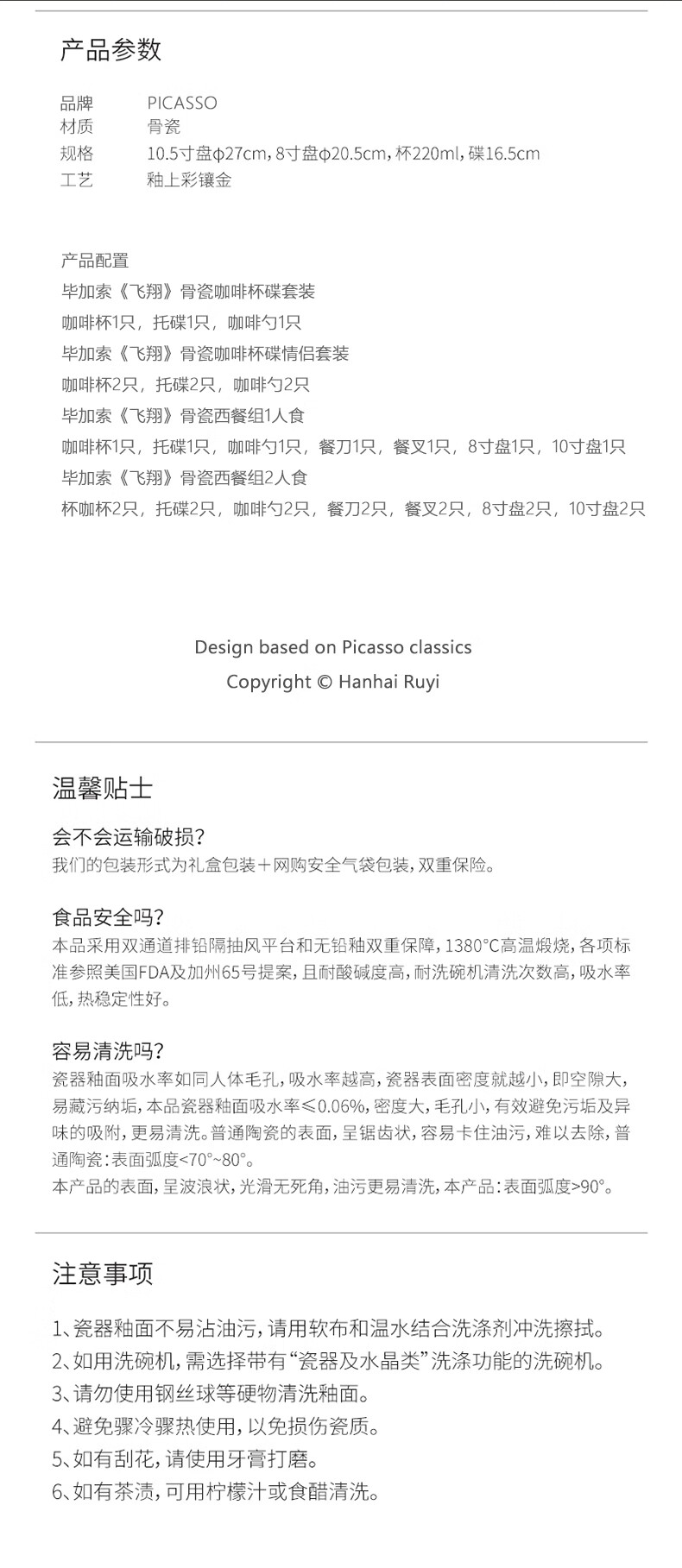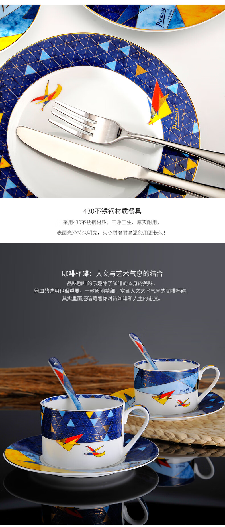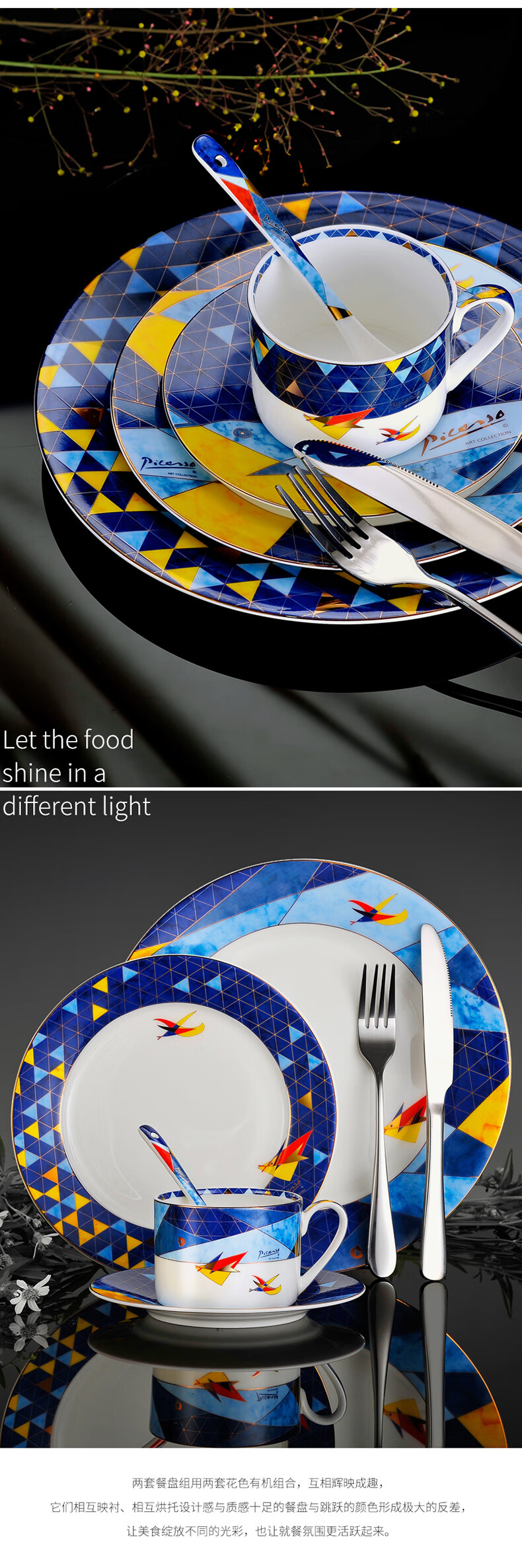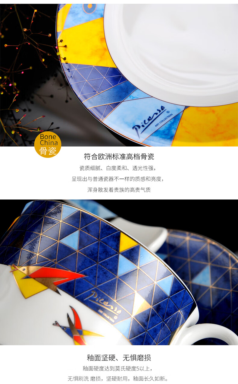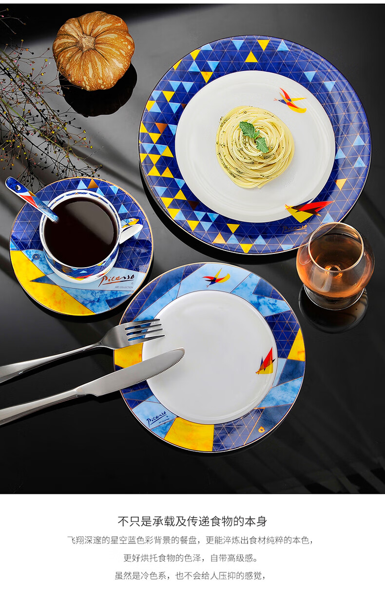 2 / Picasso毕加索西餐乔迁碗盘陶瓷餐茶具套装北欧风《飞翔》系列 毕加索骨瓷《飞翔》西餐组一人食