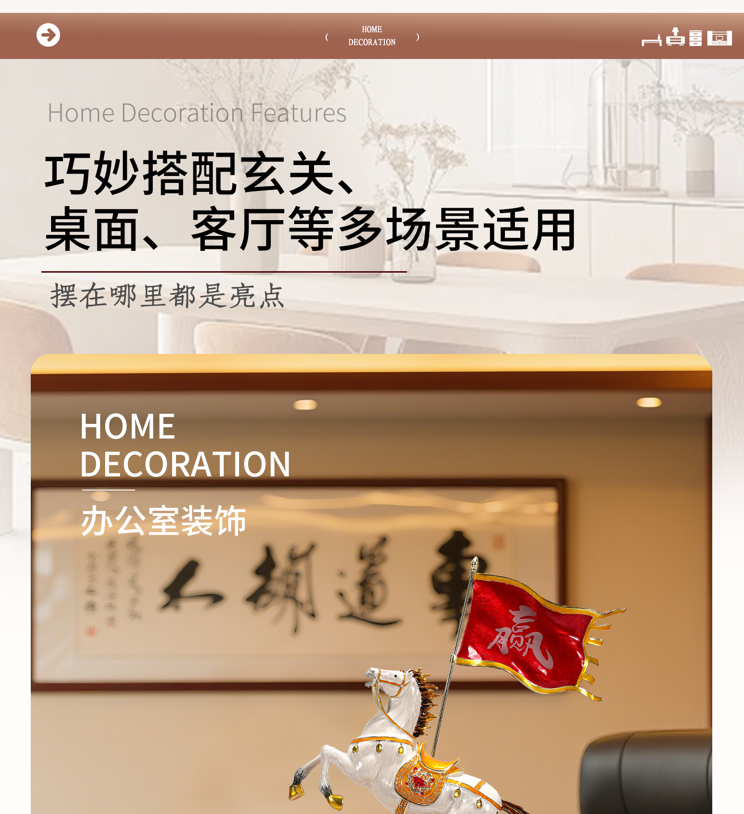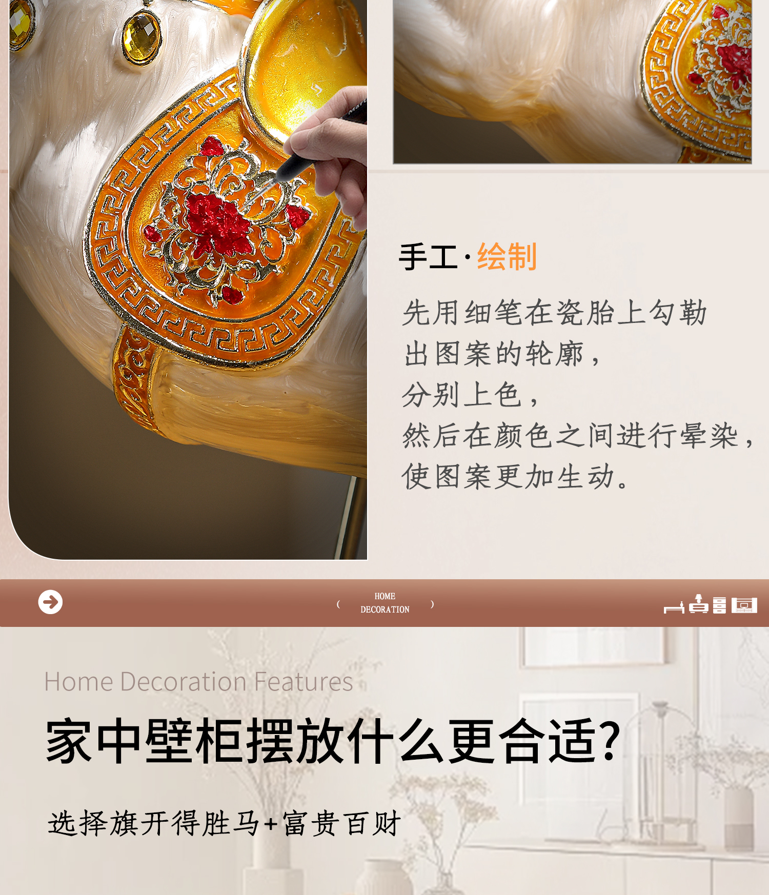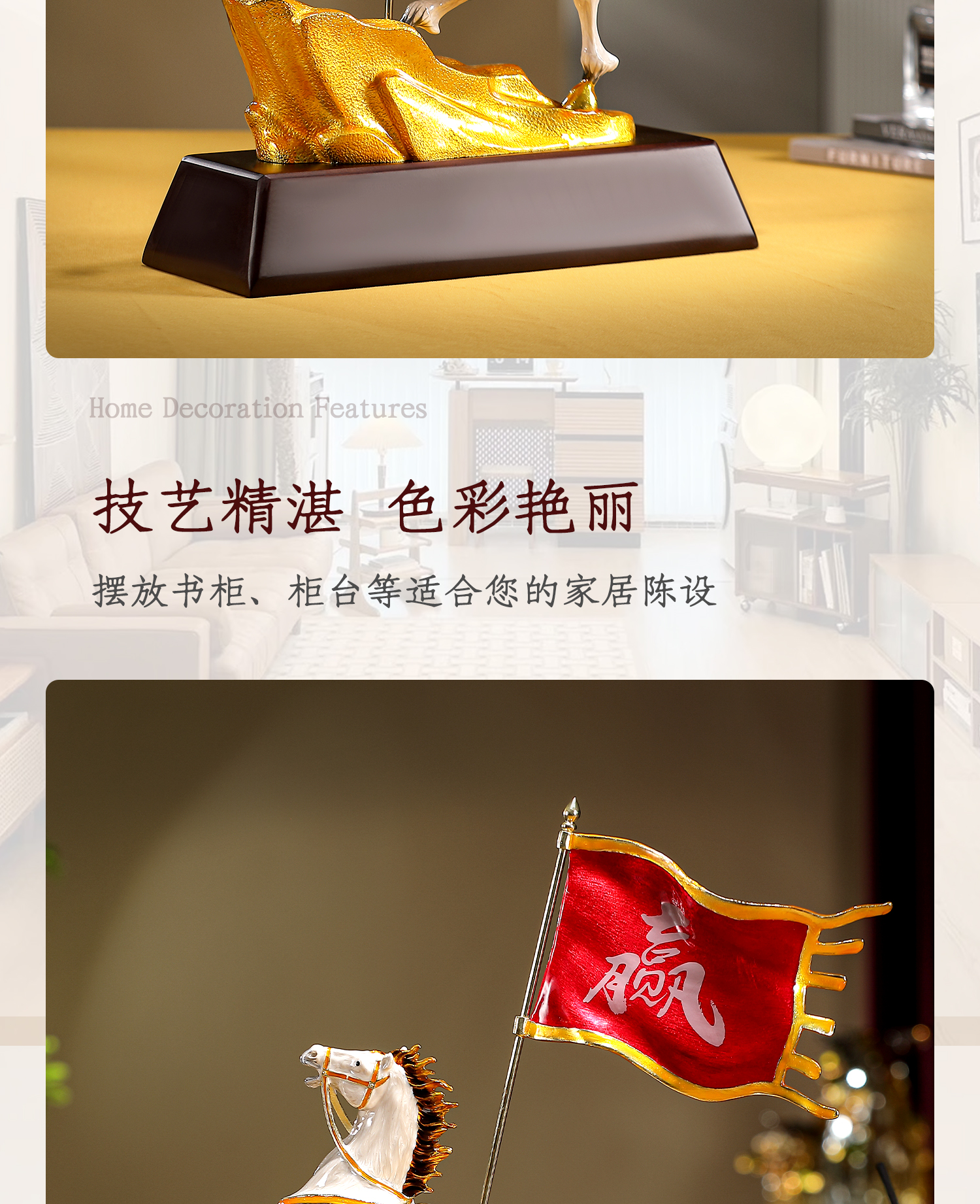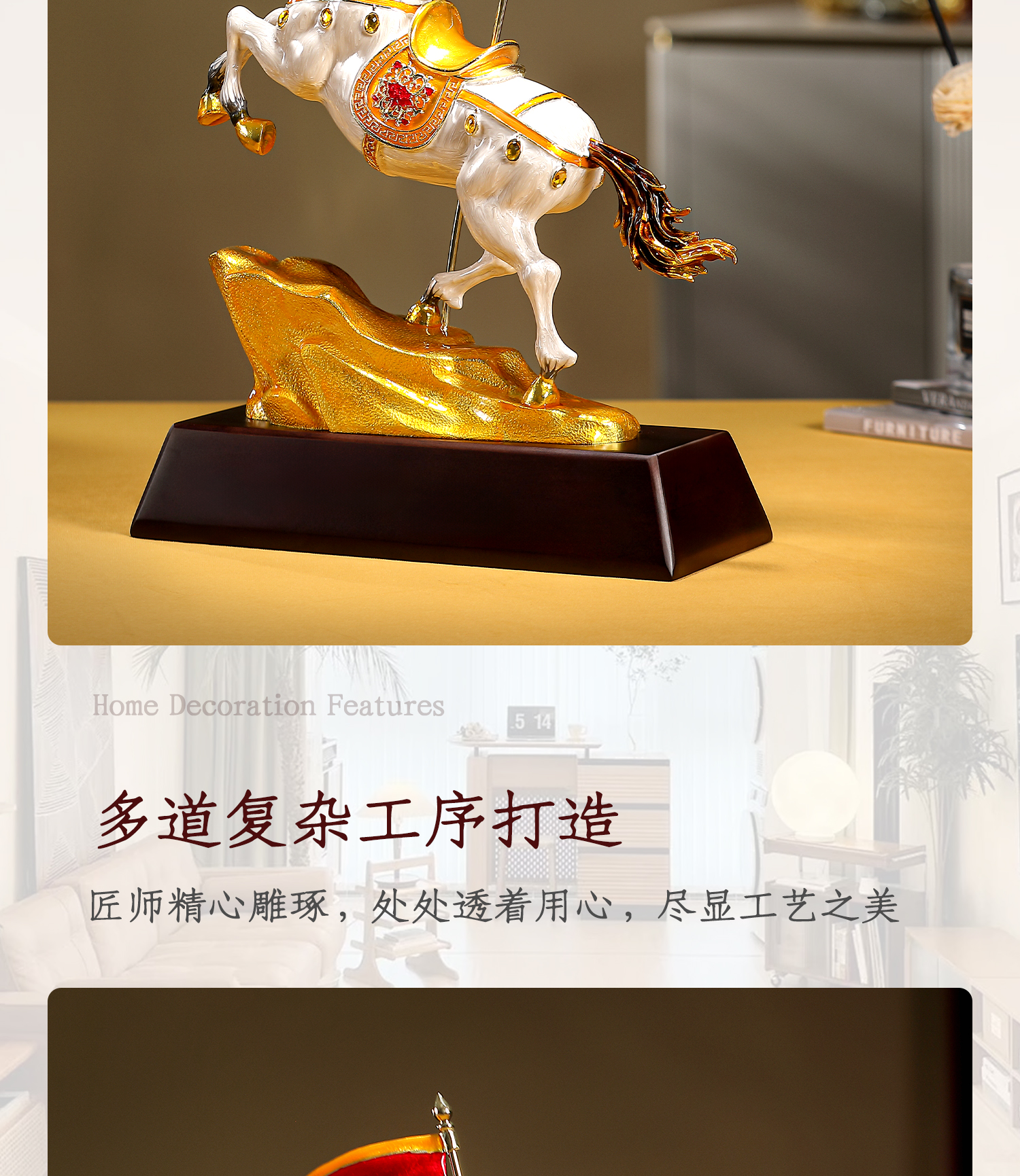 1 / 旗开得胜马到成功珐琅彩摆件办公室桌面高级感装饰品马年商务送礼