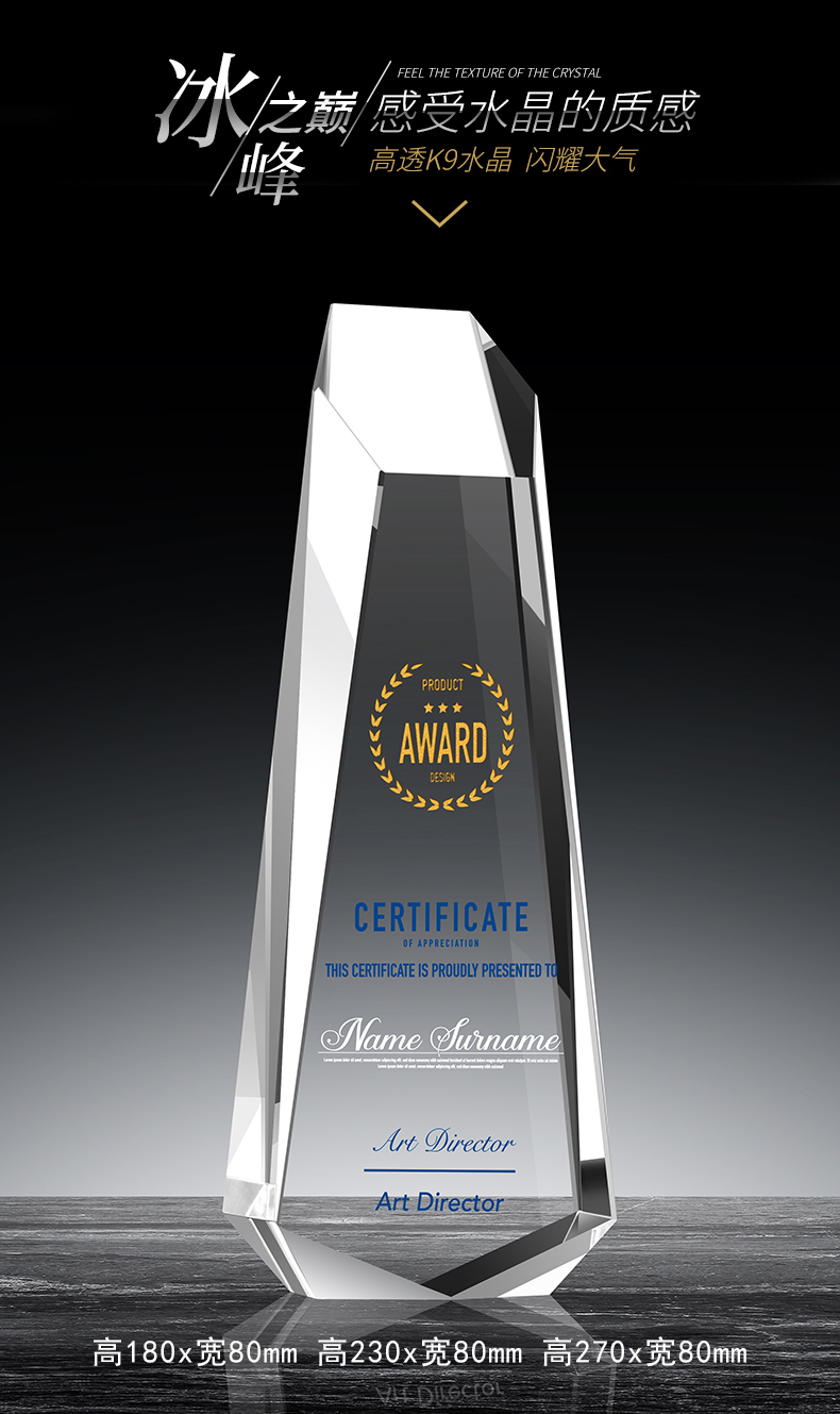 136 / 创意冰山系列水晶奖杯定制定做优秀员工冠军颁奖免费刻字制作