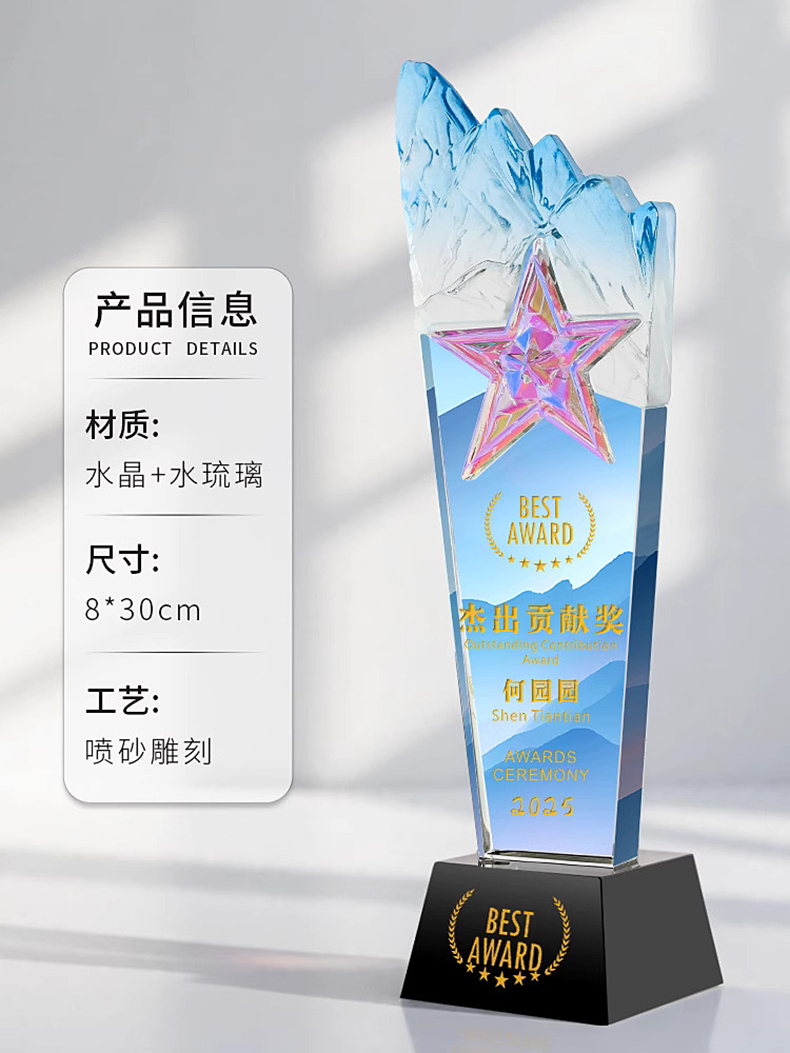 11 / 高档冰山水晶奖杯奖牌创意定制刻字比赛优秀员工表彰纪念品订制