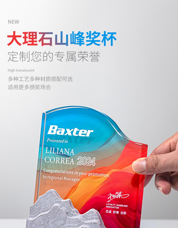 15 / 水晶奖杯定制比赛嘉奖纪念员工团队荣耀颁奖大理石奖牌刻字新
