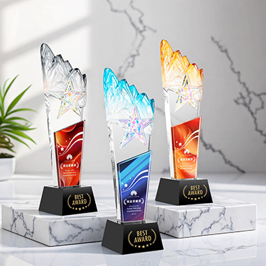 224 / 成都新款炫彩五角星水晶奖杯定制年会颁奖优秀员工经销…